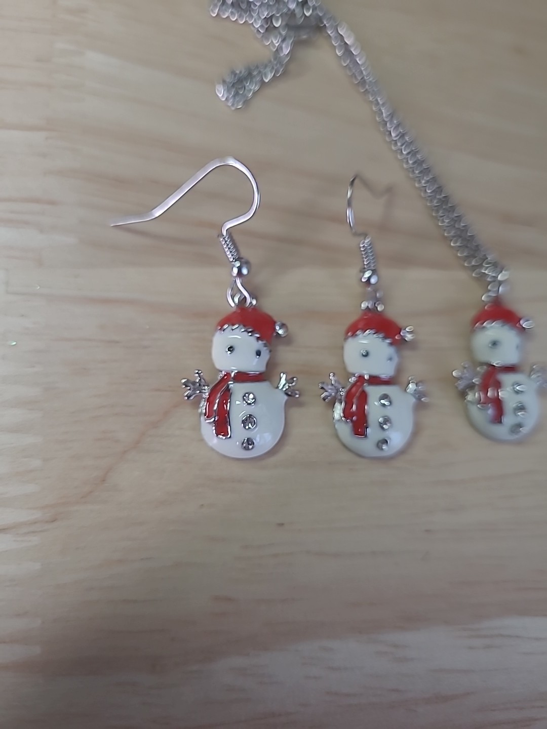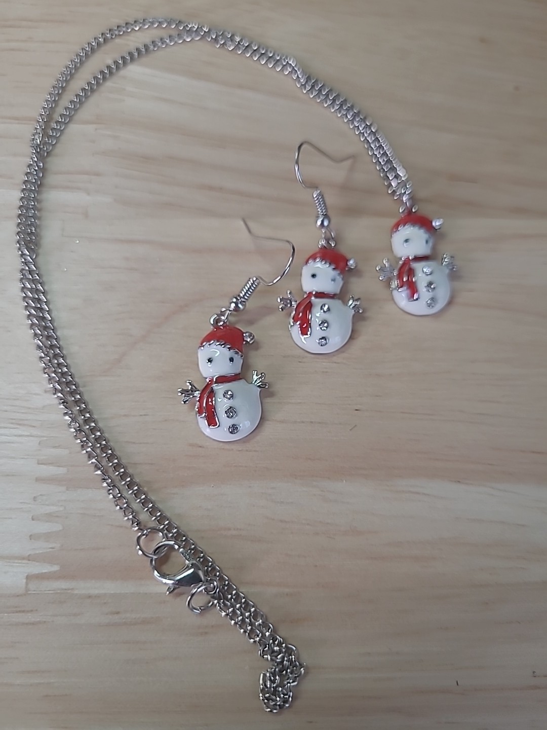 как выглядит Snowman Drop Earrings Necklace Set Holiday Gift Women Girls 18" фото