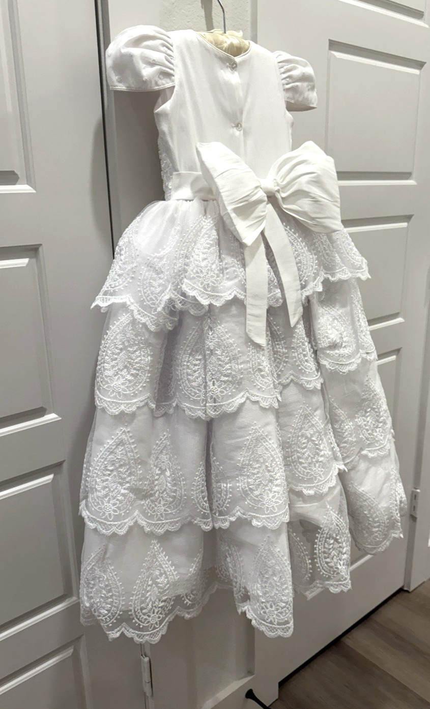 как выглядит GIRLS - FIRST COMUNION, FLOWER GIRL, BAPTISIM -WHITE DRESS SIZE 6 SHORT SLEEV фото