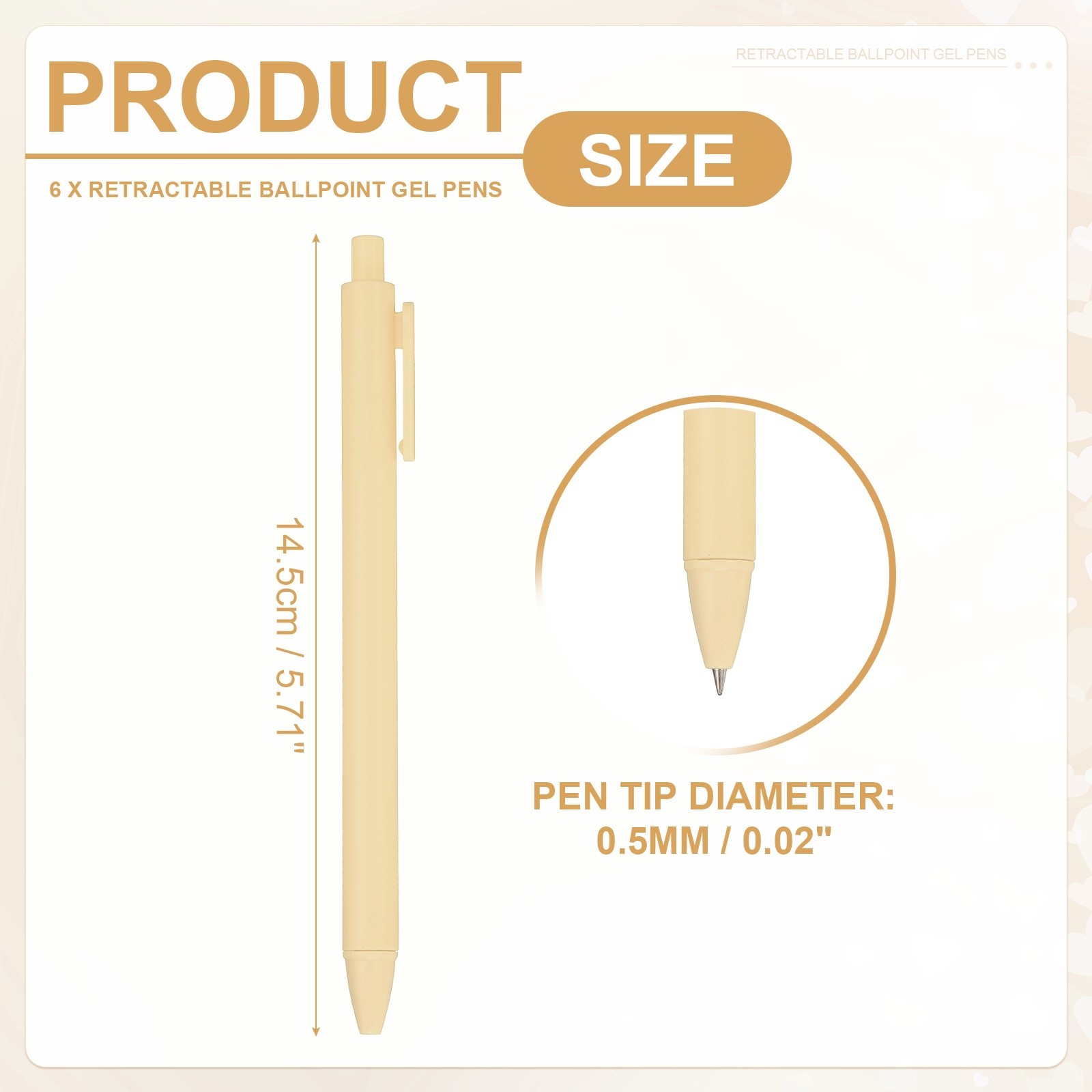 6 Pack Retractable Pens 0.5mm, Black Gel Ink for Office, Yellow