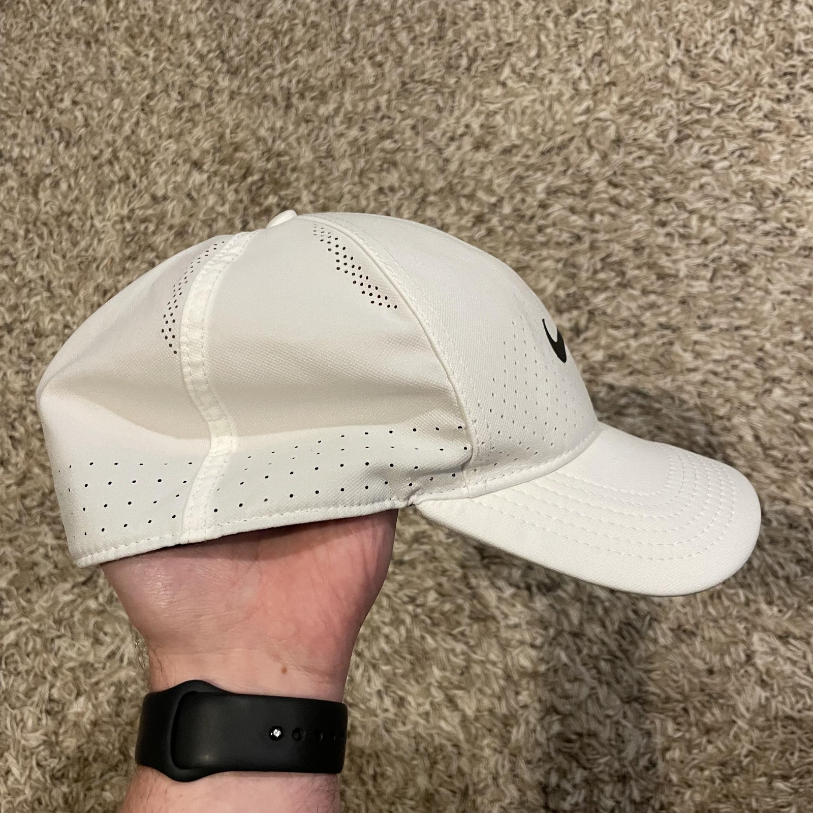как выглядит Nike Classic99 Dri-Fit Hat Cap Flex Fitted White Perforated Golf Running фото