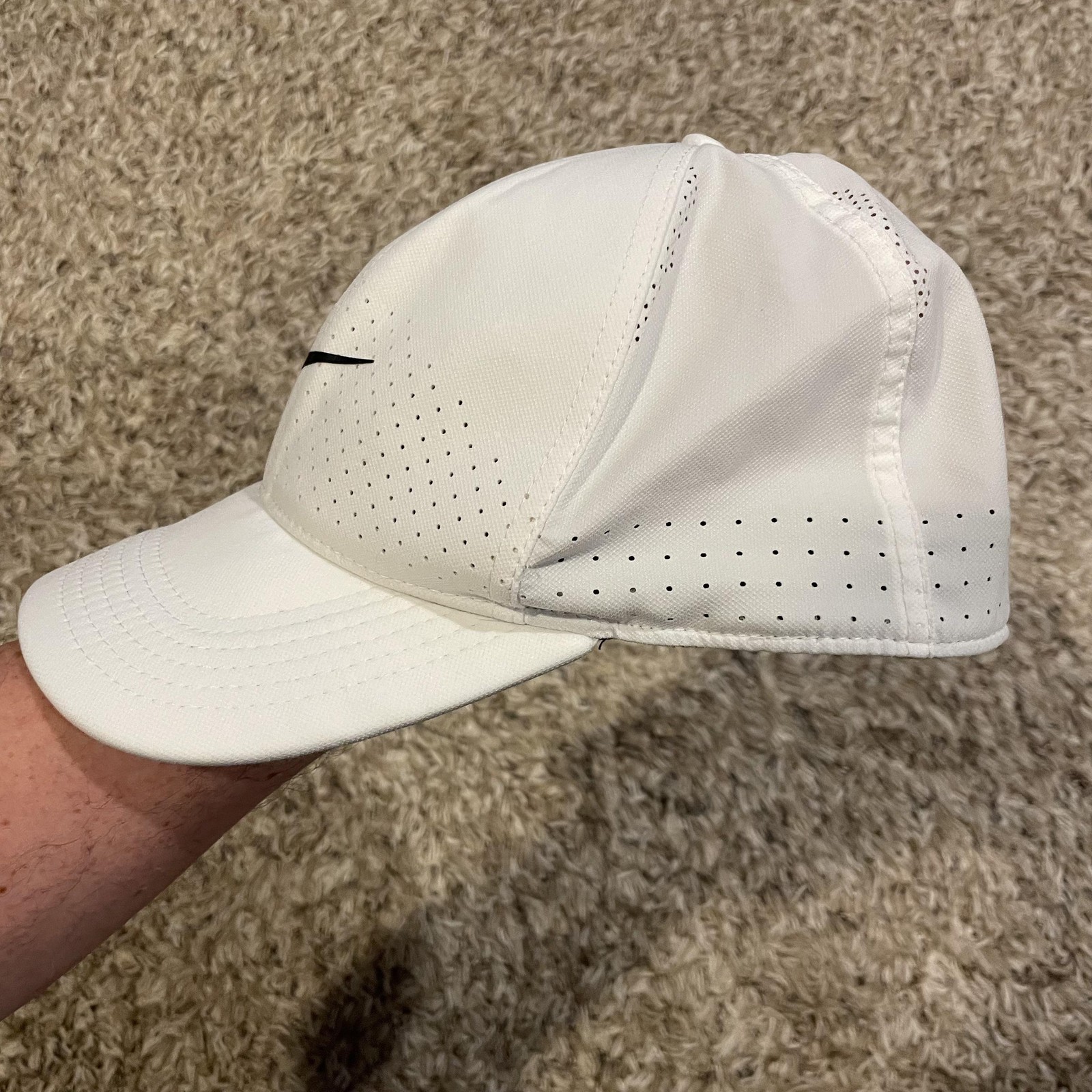 Nike Classic99 Dri-Fit Hat Cap Flex Fitted White Perforated Golf Running