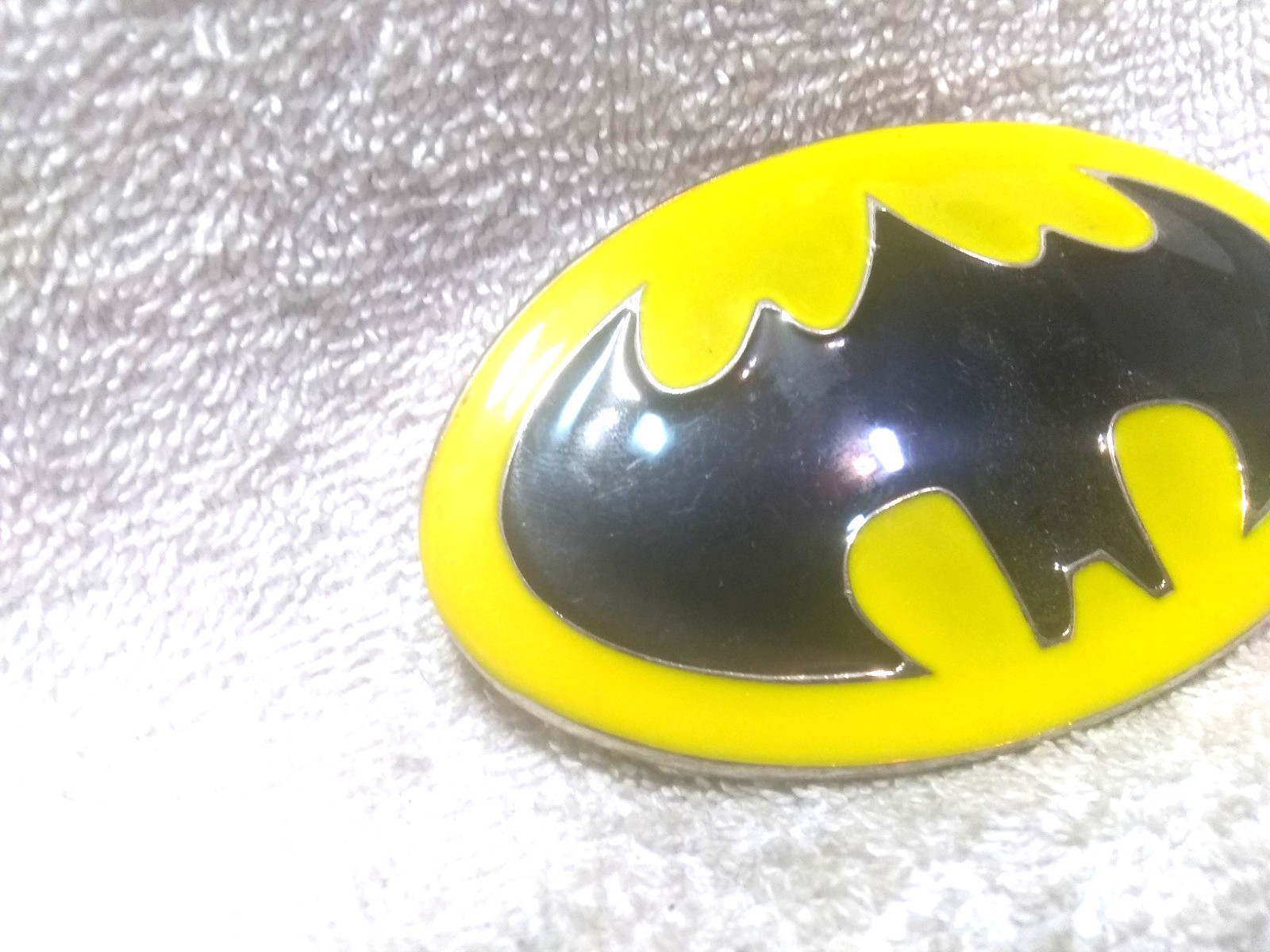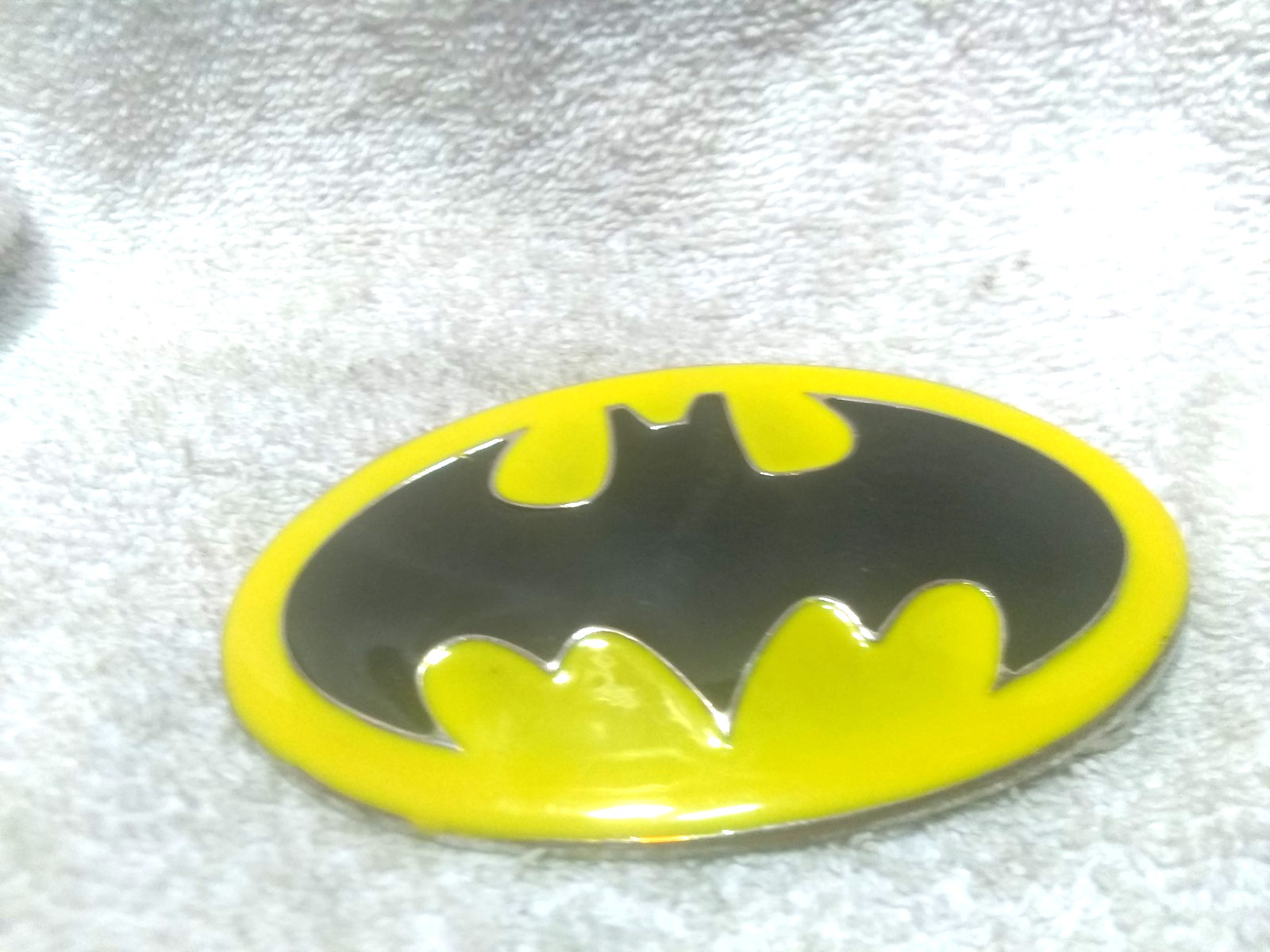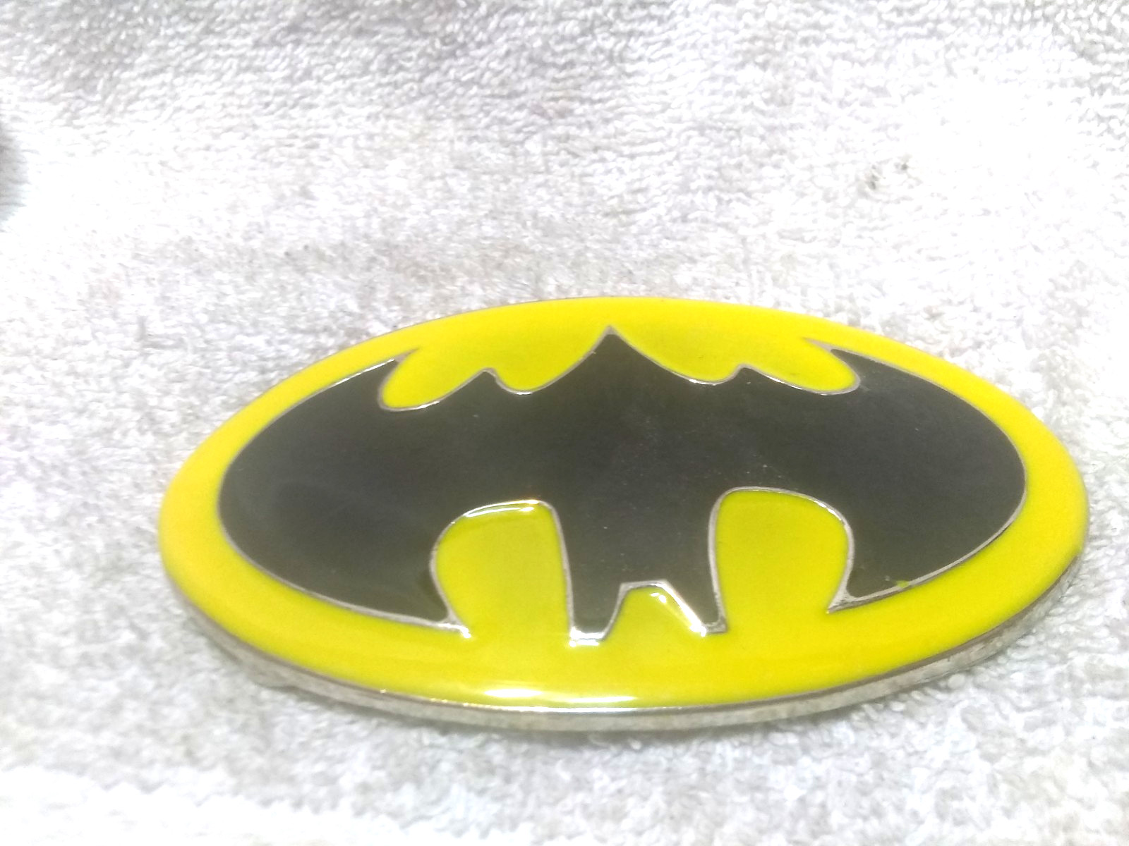 как выглядит Black Yellow Batman Belt Buckle Oval Shape Great Vintage Condition фото