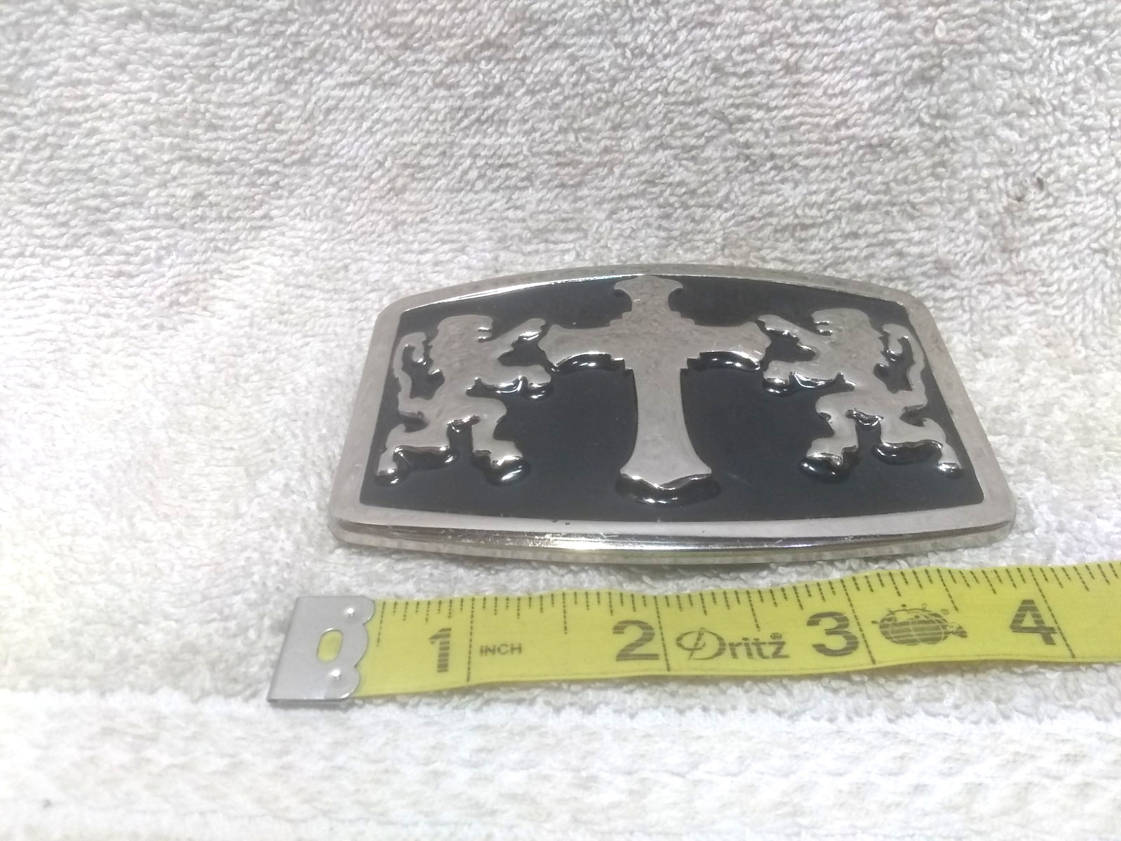 Double Lions and Cross Black Silver Belt Buckle Silver Rectangle Frame Great