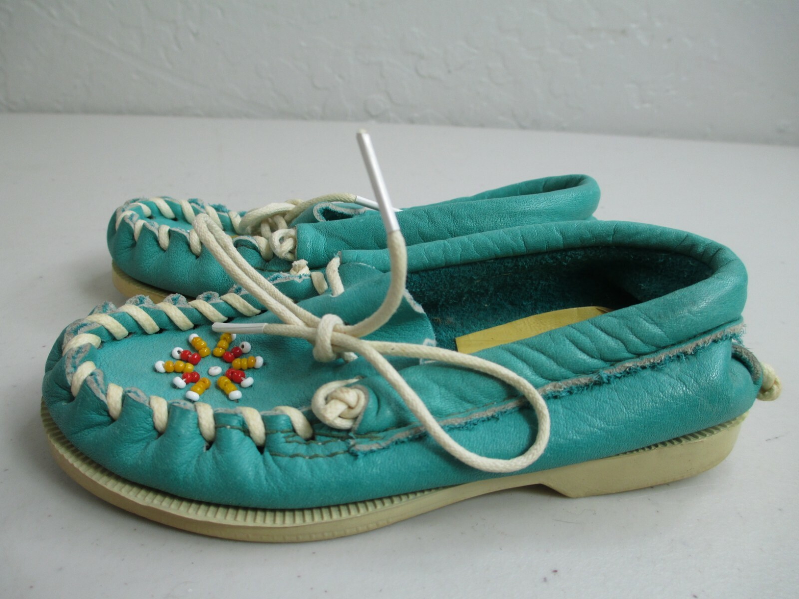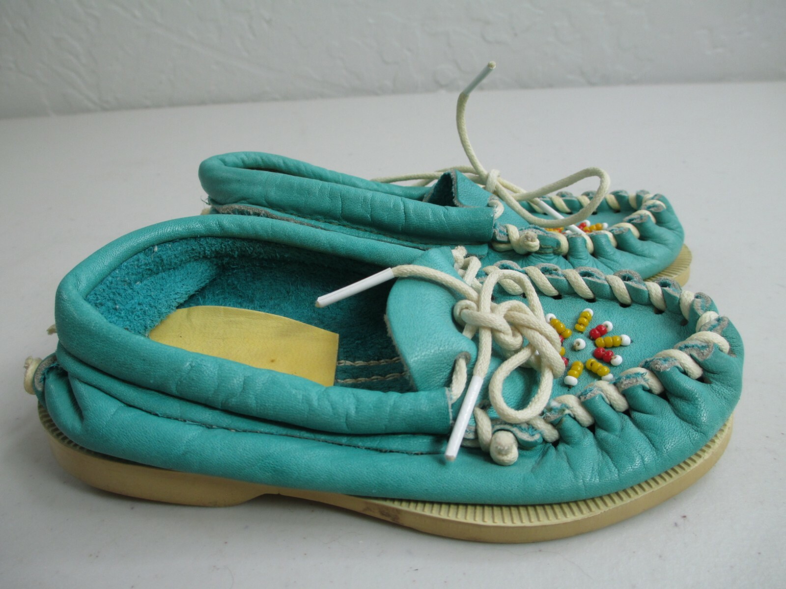 Vintage leather beaded moccasins 70's era Panco toddler Childs 6.5