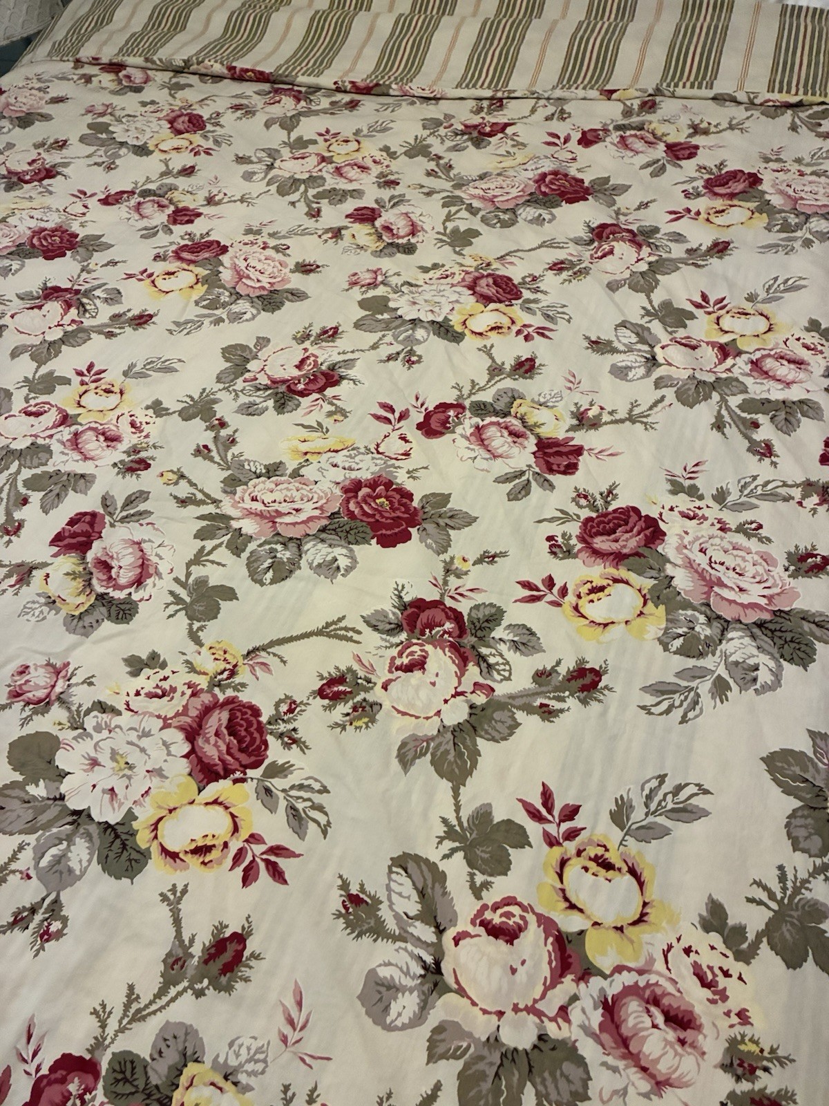Pottery Barn Duvet Cover FULL Floral Cotton Pink Yellow Gray Green 80x82