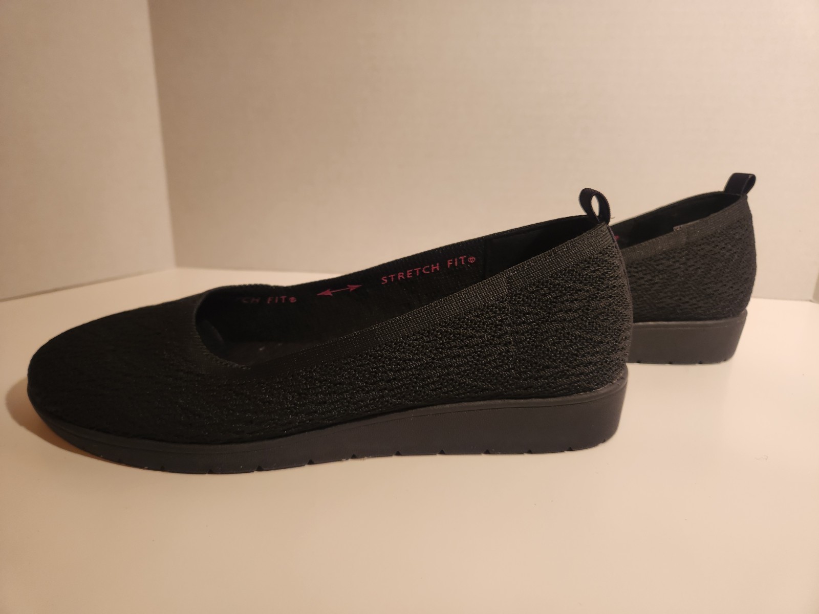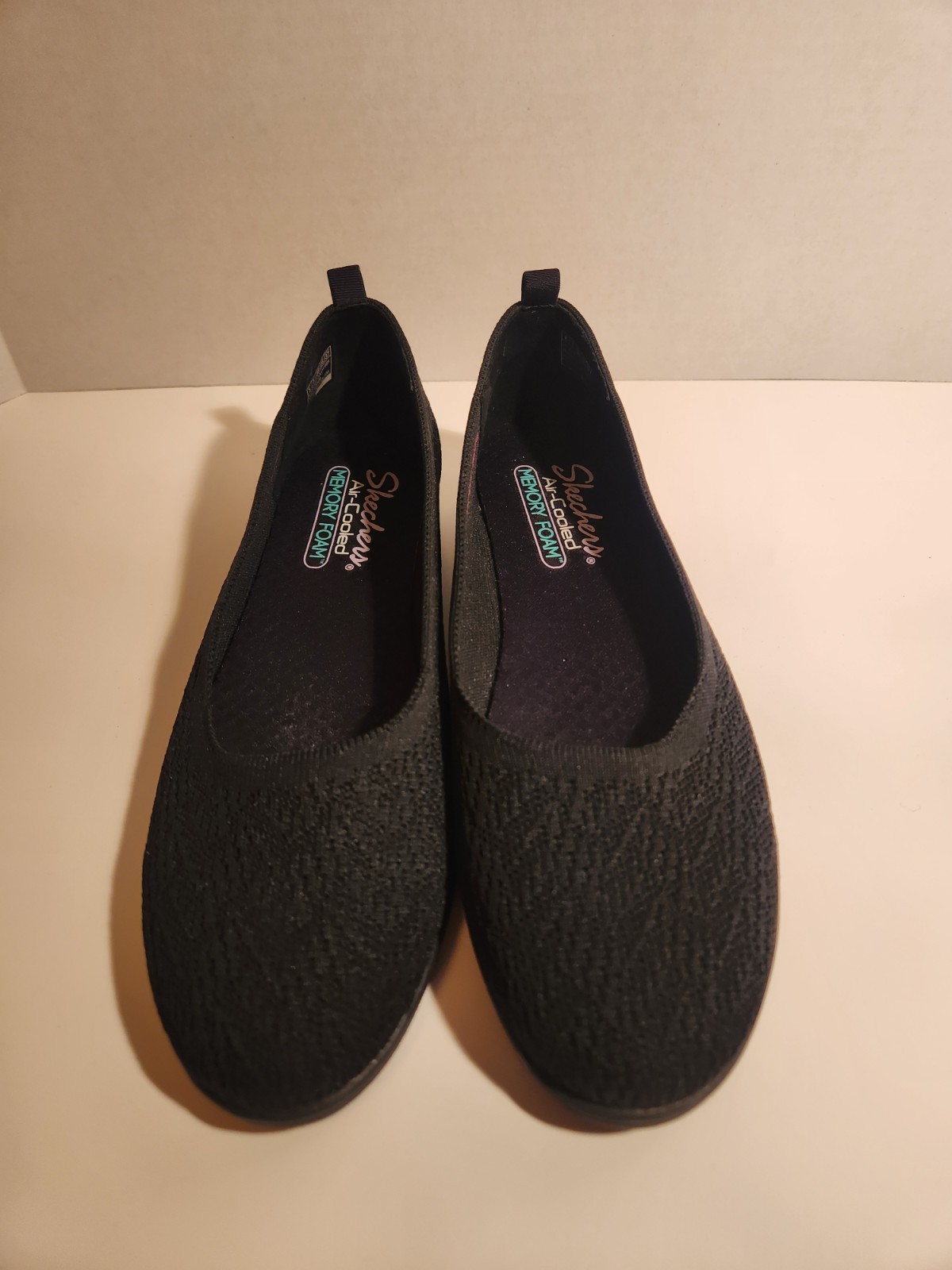 Skechers Wedge Flats Cleo Flex Memory Foam Comfort Womens Size 8 Black knit