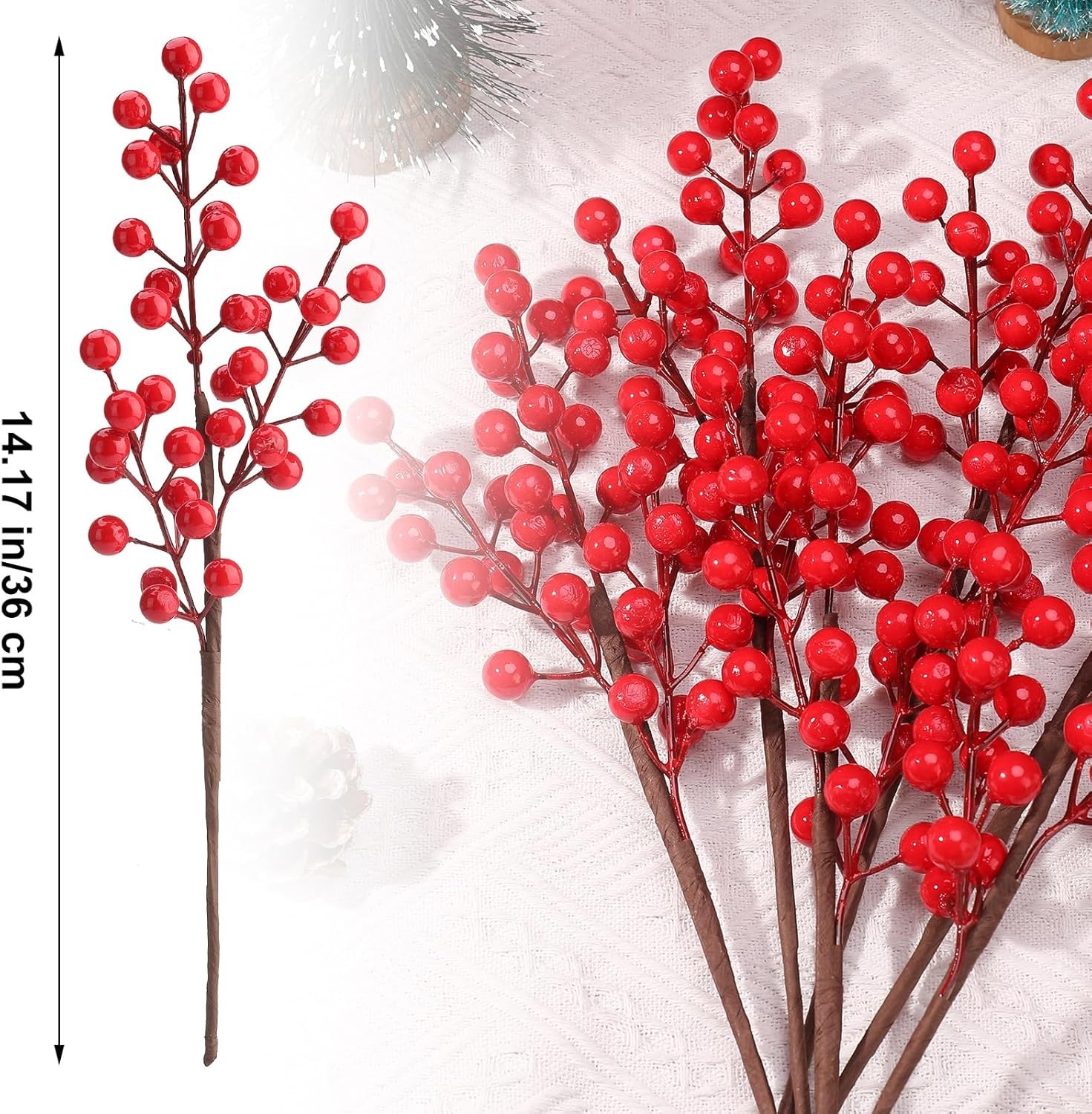 Christmas Holly Flowers Picks,Artificial Red Berry Stems,Red Berries Floral