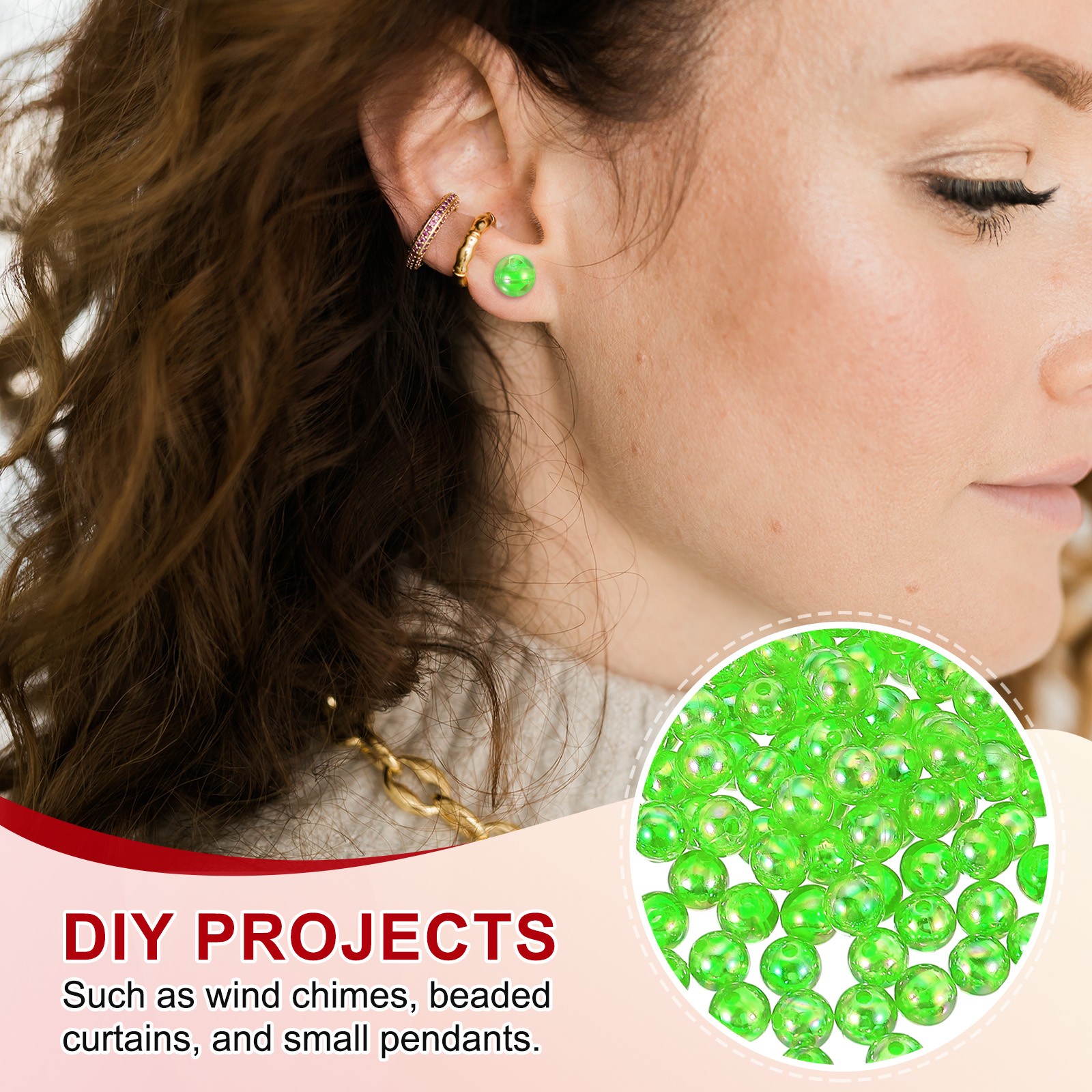 200 Pcs 8 mm Acrylic Round Beads AB Colors Clear Beads with Hole, Light Green