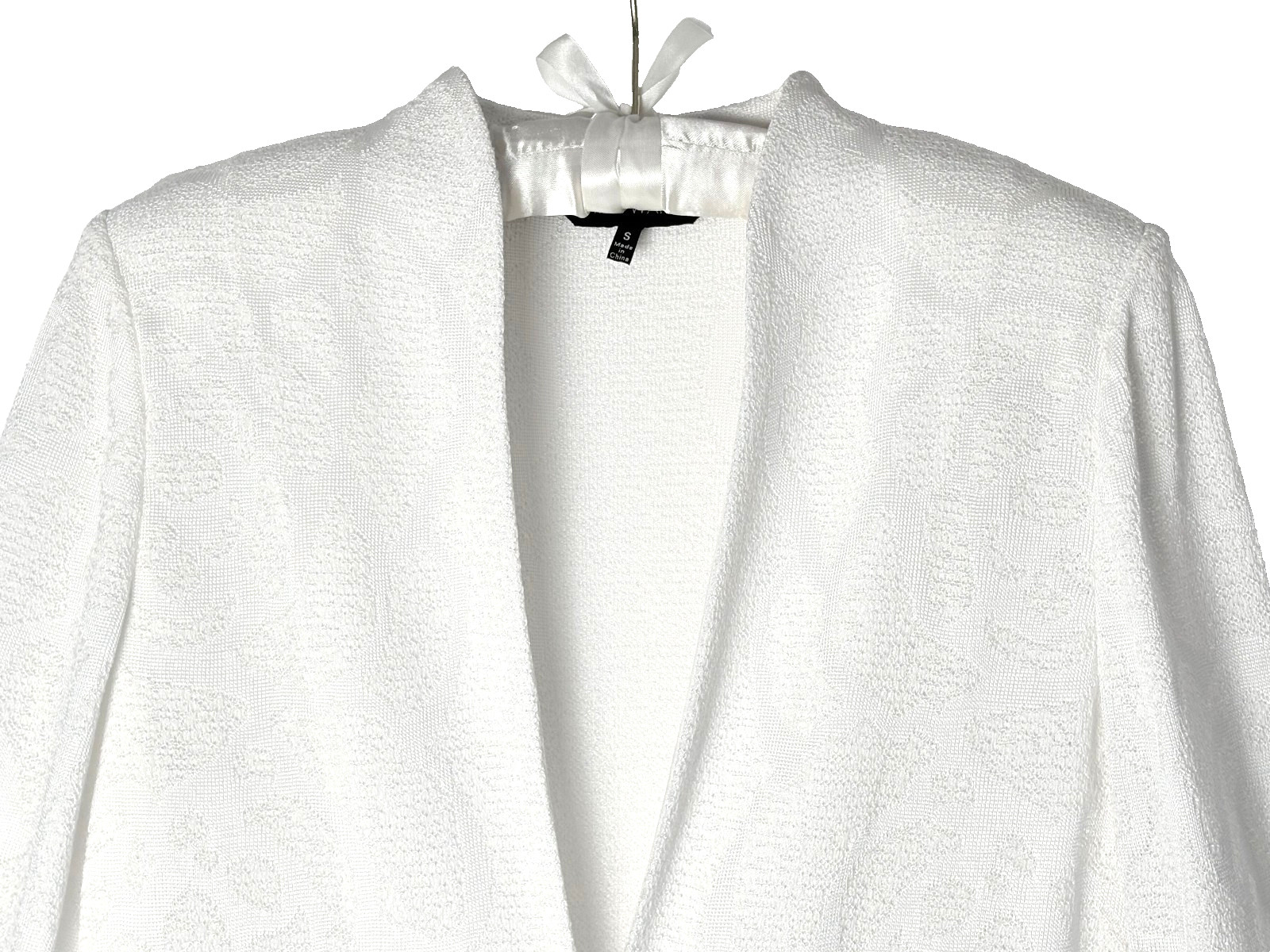 как выглядит Ming Wang White Jacgaurd Long Jacket Side Slits One Hook Eye 3/4 Sleeve фото