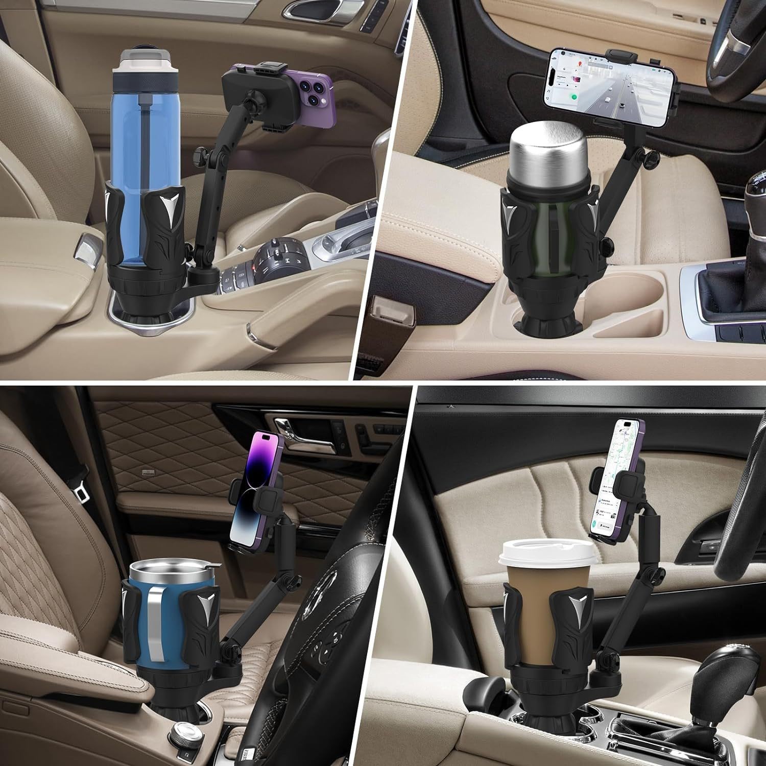 2 in 1 Cup Holder Phone Mount Adjustable Cup Holder Expander For 12-46 oz Drink