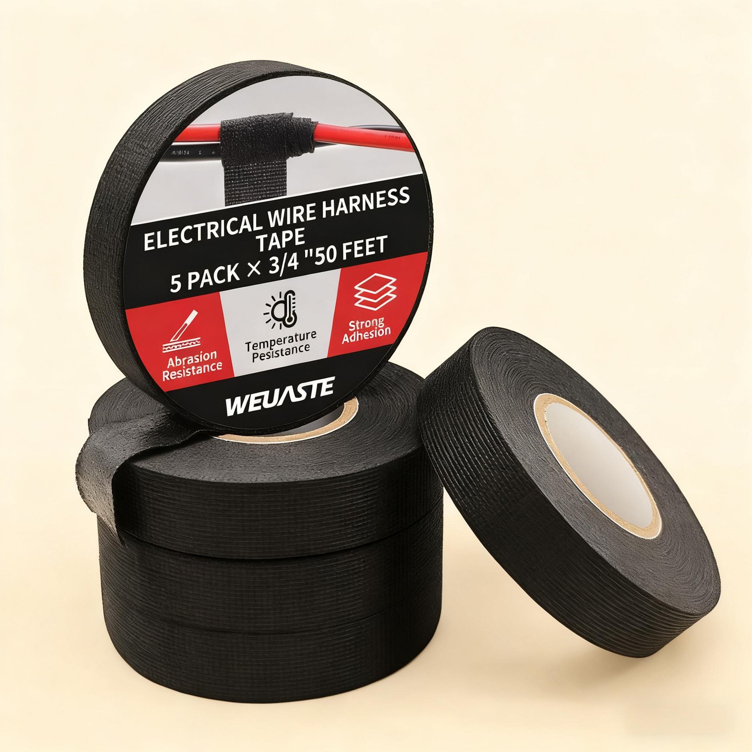 High Temp Wiring Harness Tape 5 Pack 3/4x50FT - Self-Adhesive for Appliance 3