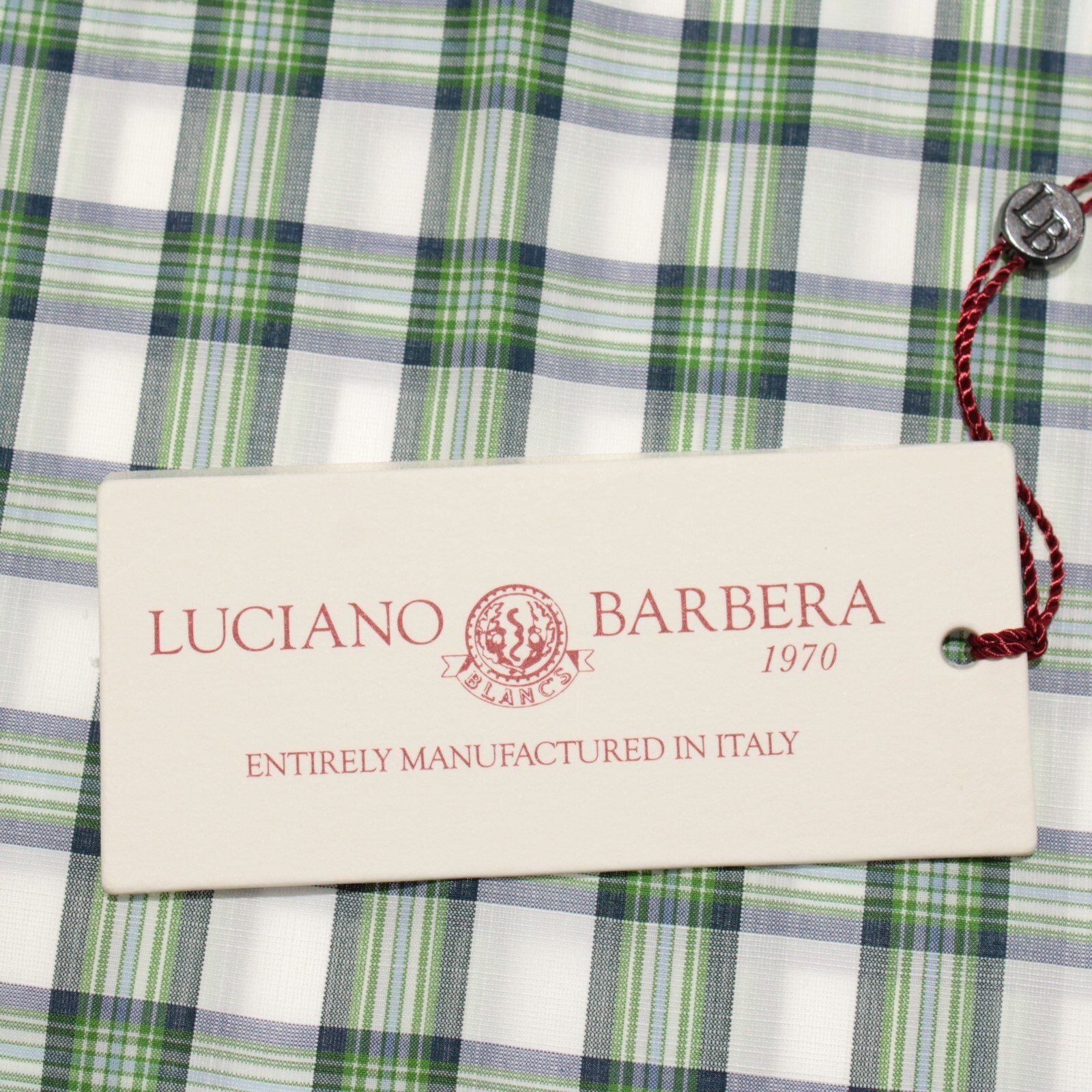 Luciano Barbera NWT Casual Button Down Shirt Size M in Green Plaid 100 Cotton