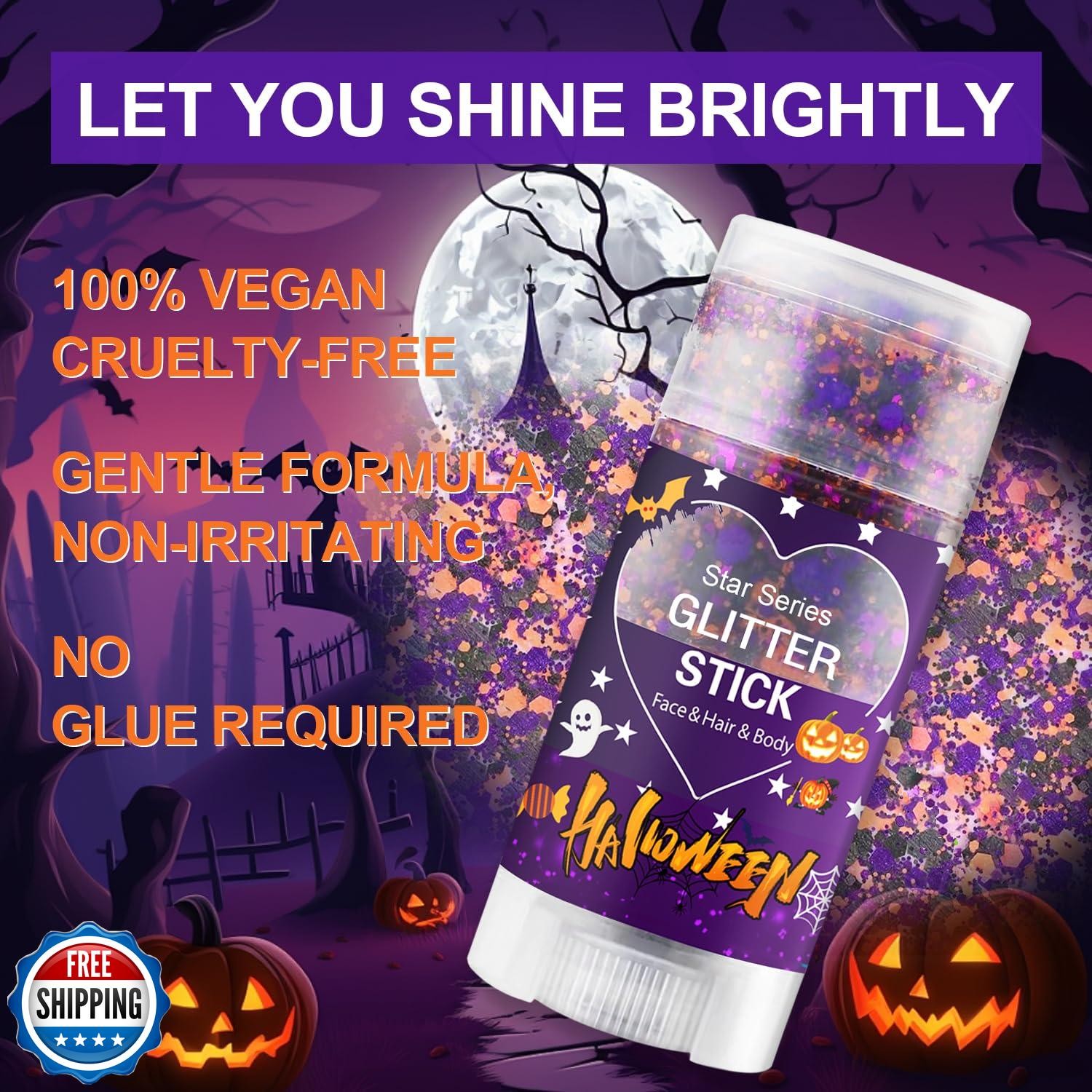 Halloween Body Glitter Stick, Black Orange Purple Sequin Hair Glitter for Rum