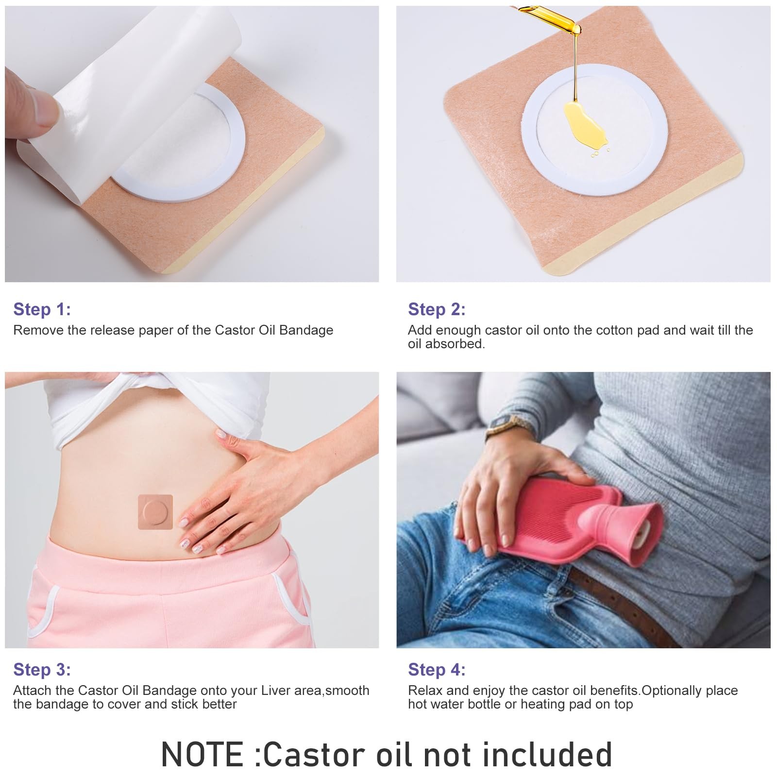 40pcs Castor Oil Pack Wrap for Belly Button, Self-Adhesive Disposable Castor ...