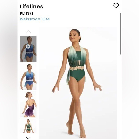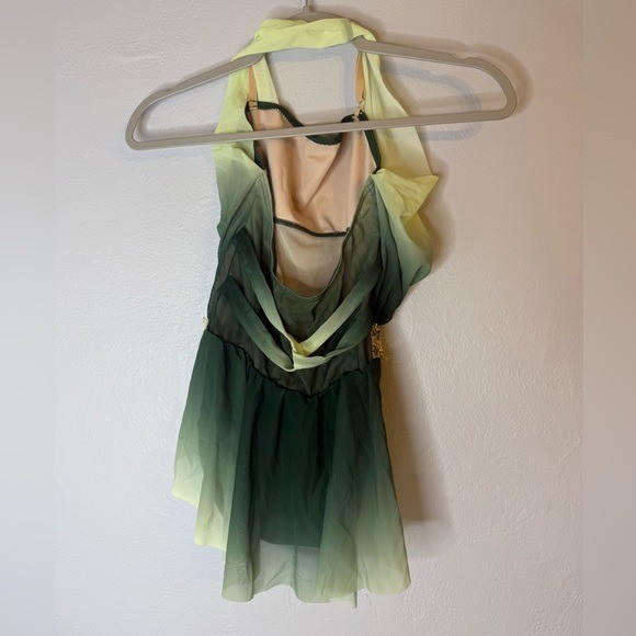 как выглядит Weissman Elite Draped Halter Green Mesh Dance Leotard Costume NEW Large Child фото