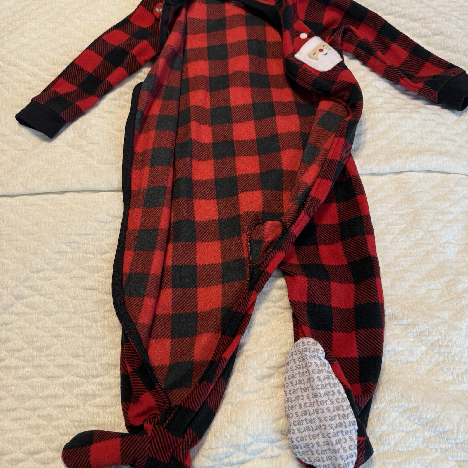 Carter s Buffalo Plaid Fleece Footie Pajamas Sz 2T Santa Christmas Holiday Unise