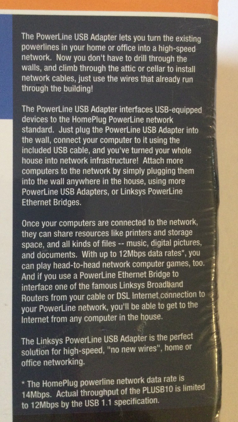 USB Adapter Powerline Wired Linksys Model PLUSB10 Brand New UNUSED OPENED BOX