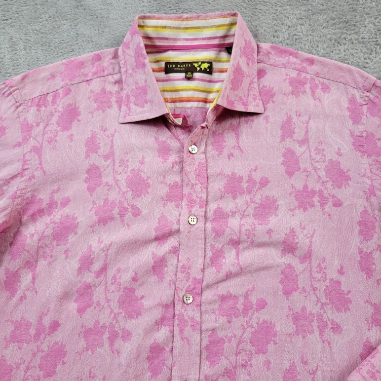 как выглядит Ted Baker London Button Up Dress Shirt Mens 16 40.5 Cotton Pink Floral фото
