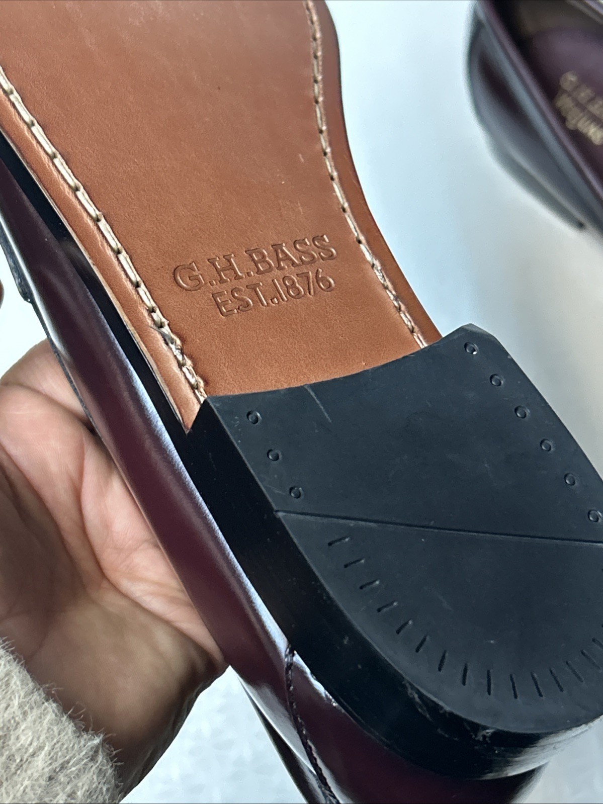 GH Bass Weejuns Logan Polished Leather Penny Loafers Wine Men's Size 9D