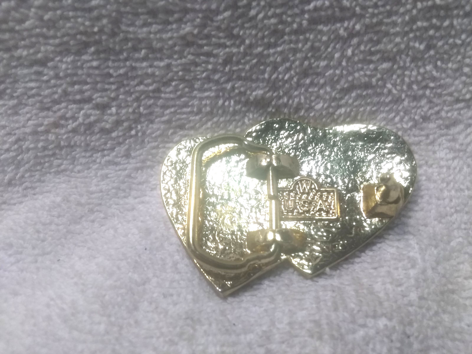 как выглядит Double Heart Center Butterfly Gold Edge W Brand Buckle USA Made Vintage фото