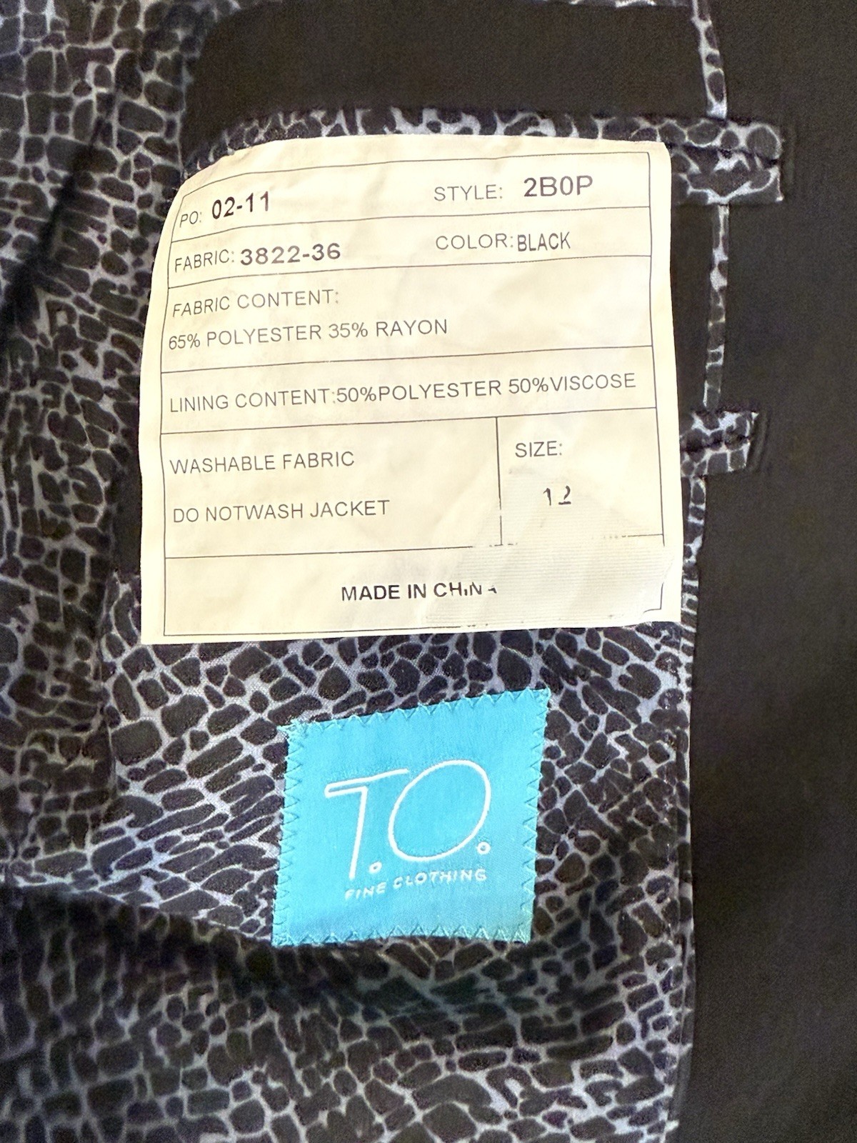 T.O. Collection Fine Clothing Boys Navy Black Suit Size 12R And Pants 10R