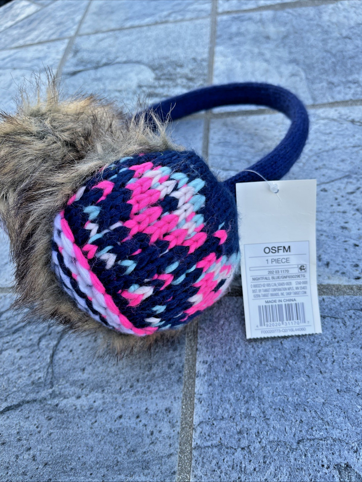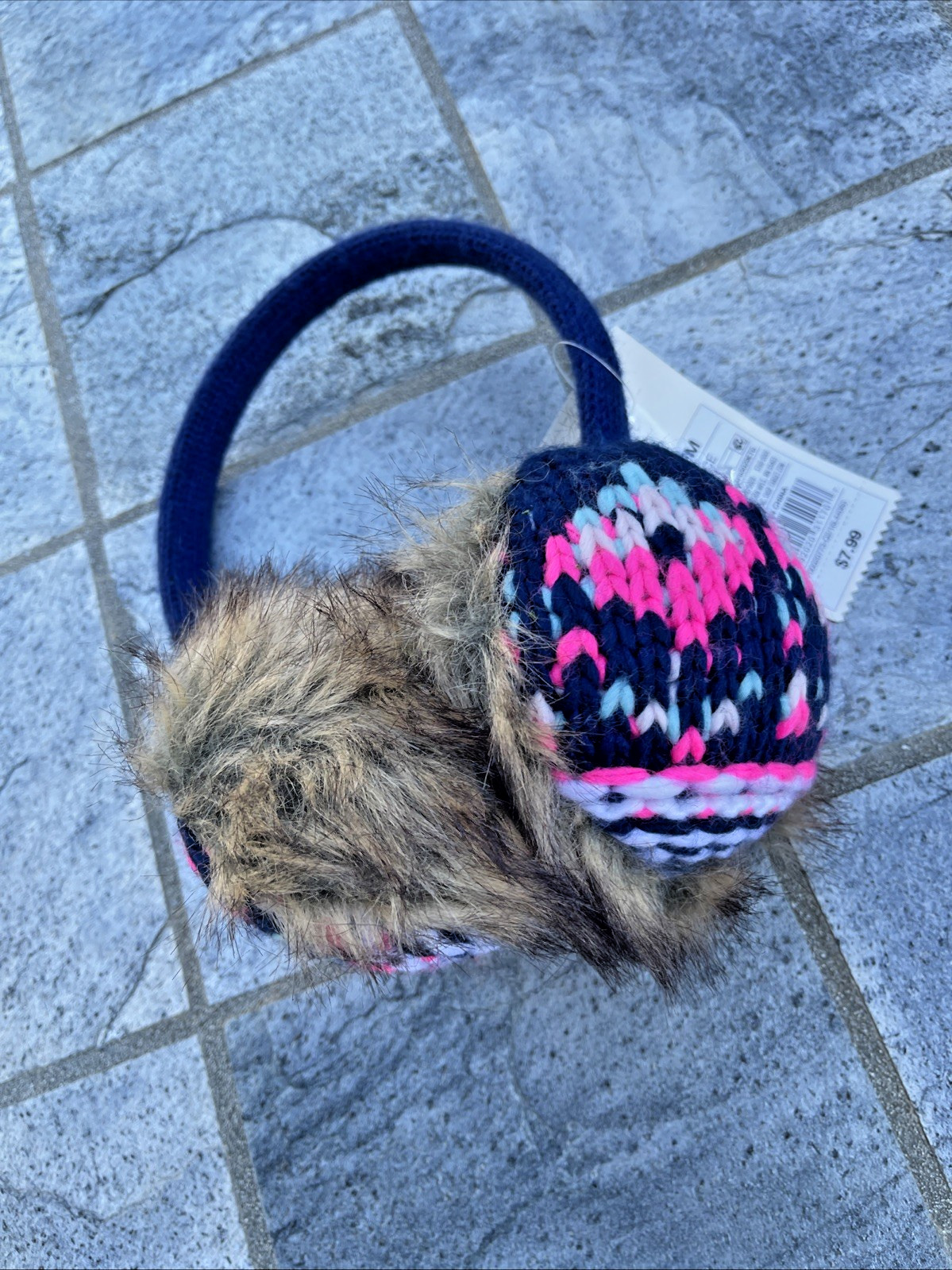 NWT Adj Kids Ear Muffs Youth Child Faux Fur CAT JACK Brand Knitted Pink Blue