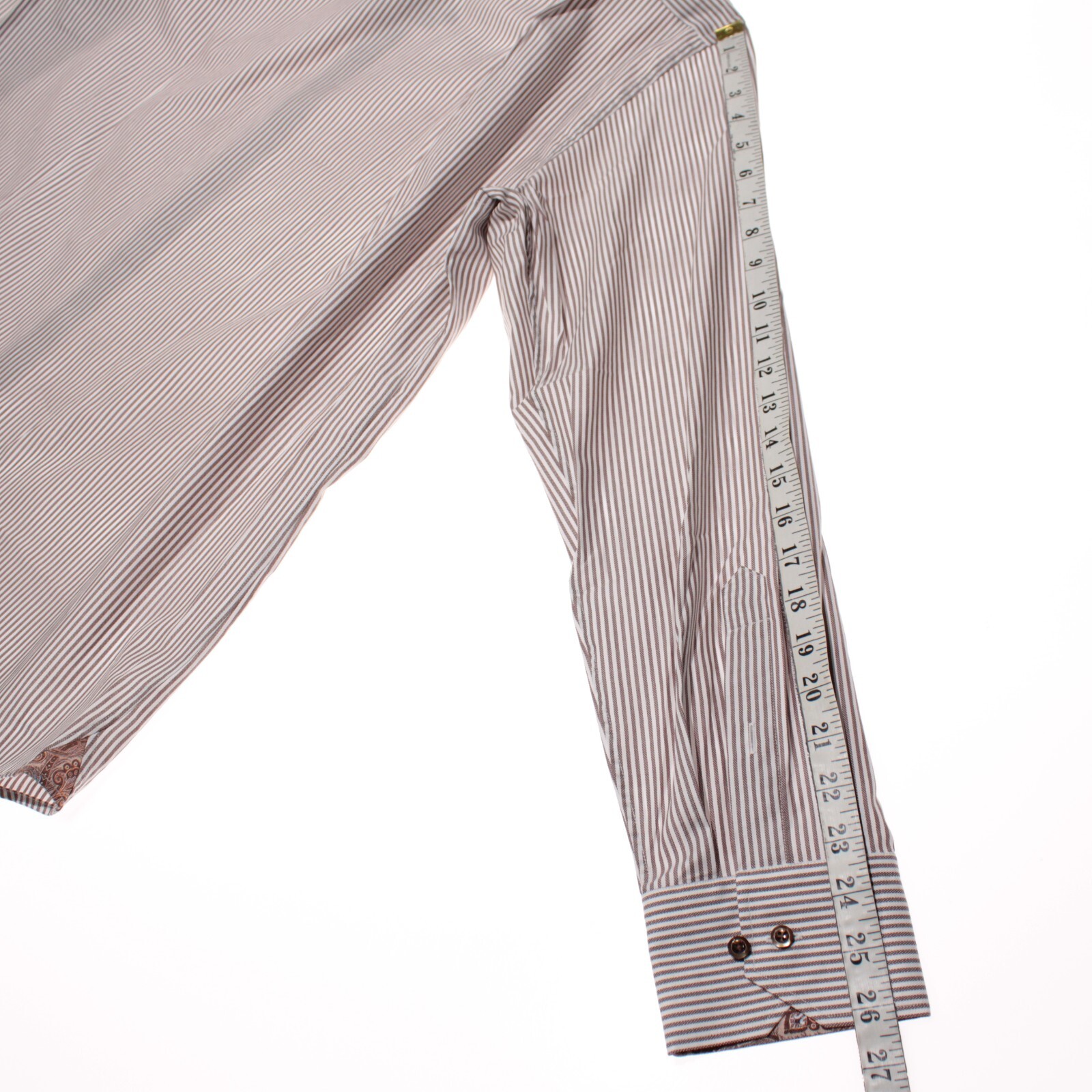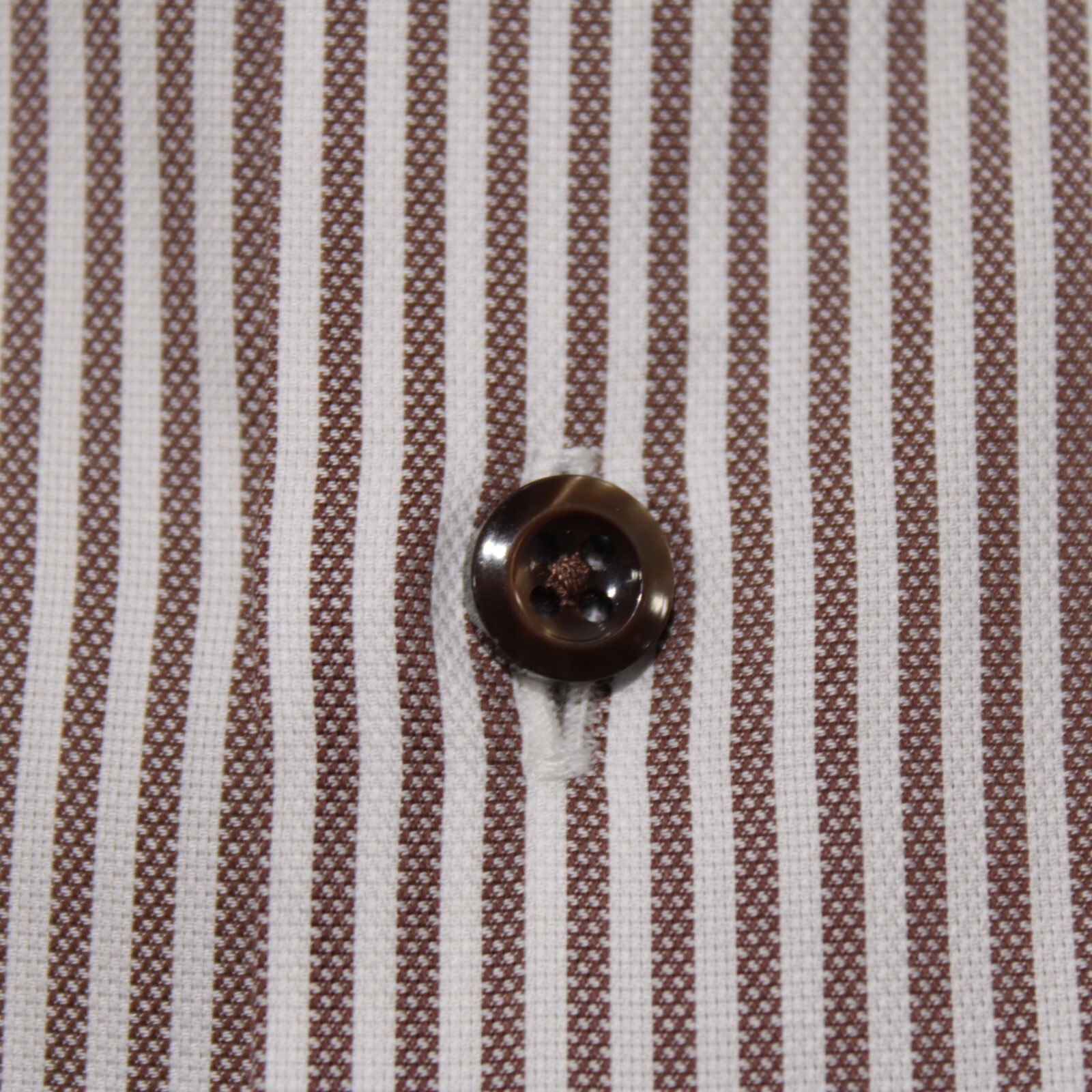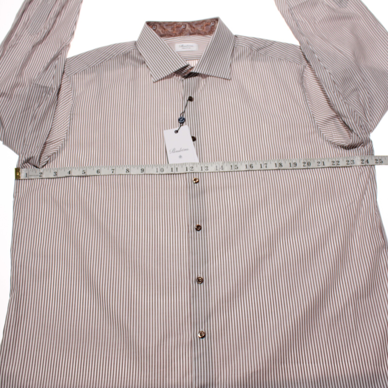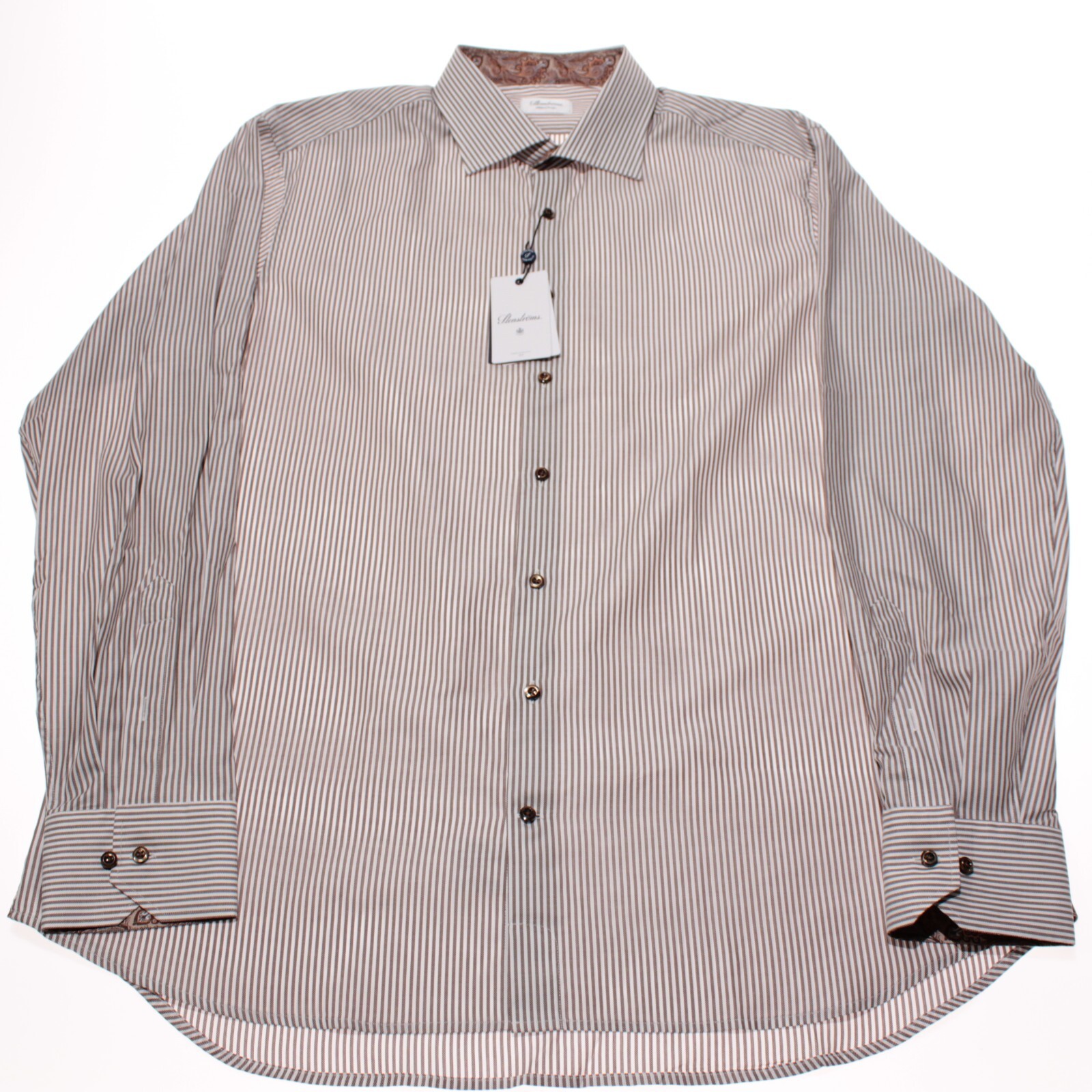 Stenstroms NWT Dress Shirt Size 17.5 44 Fitted Body Brown White Stripes Cotton