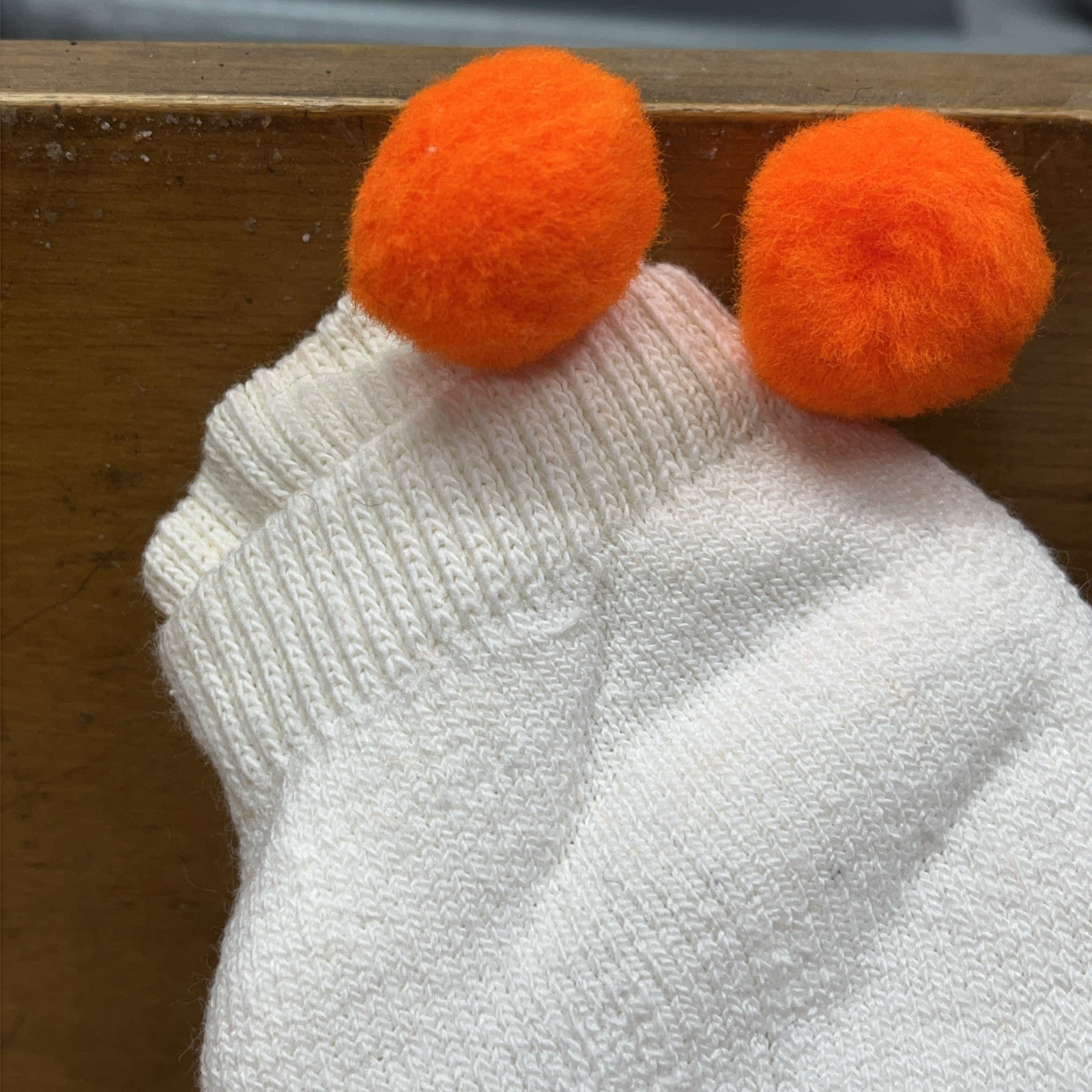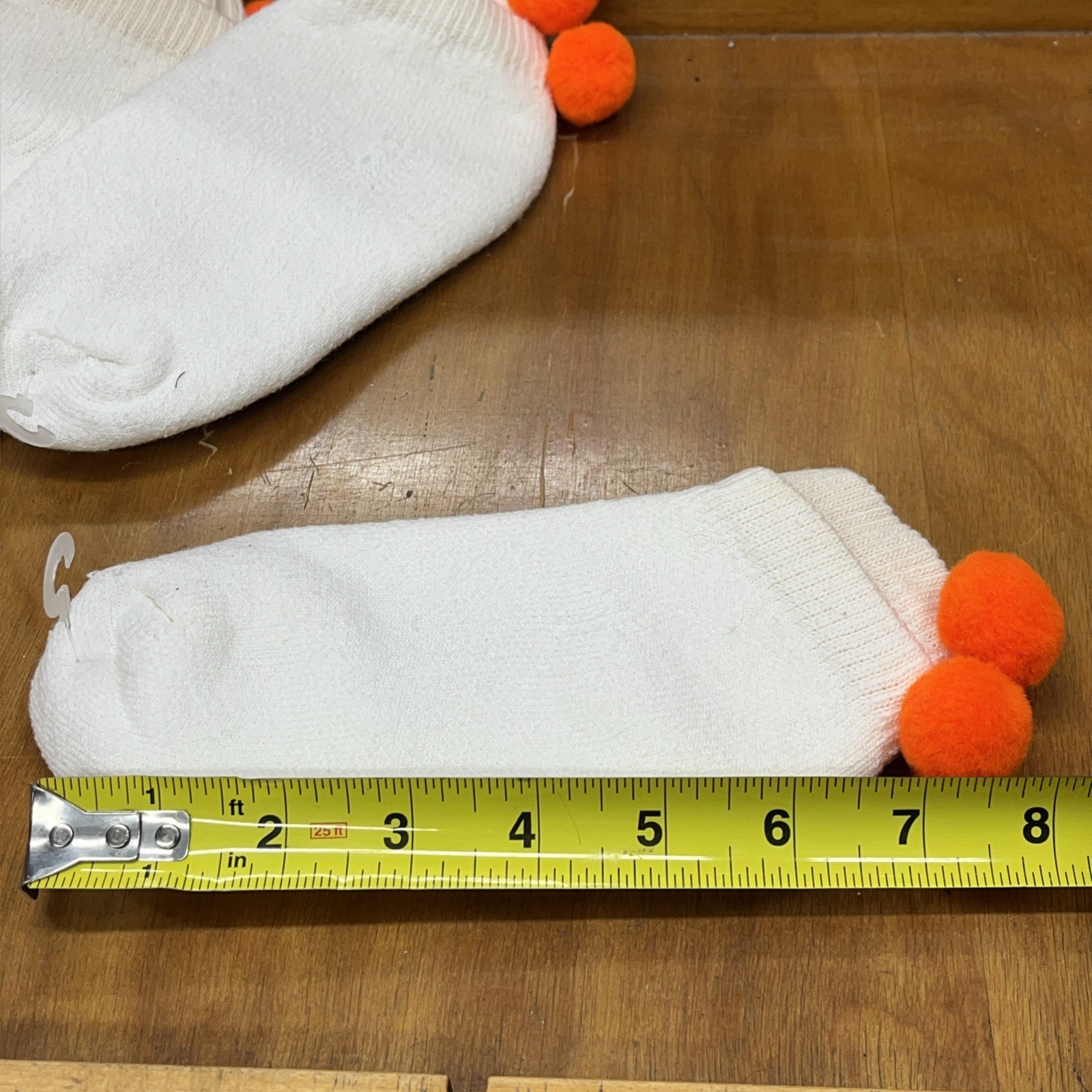 New Vintage 5 pair Lot Low Cut POM POM BALL Ankle SOCKS orange white