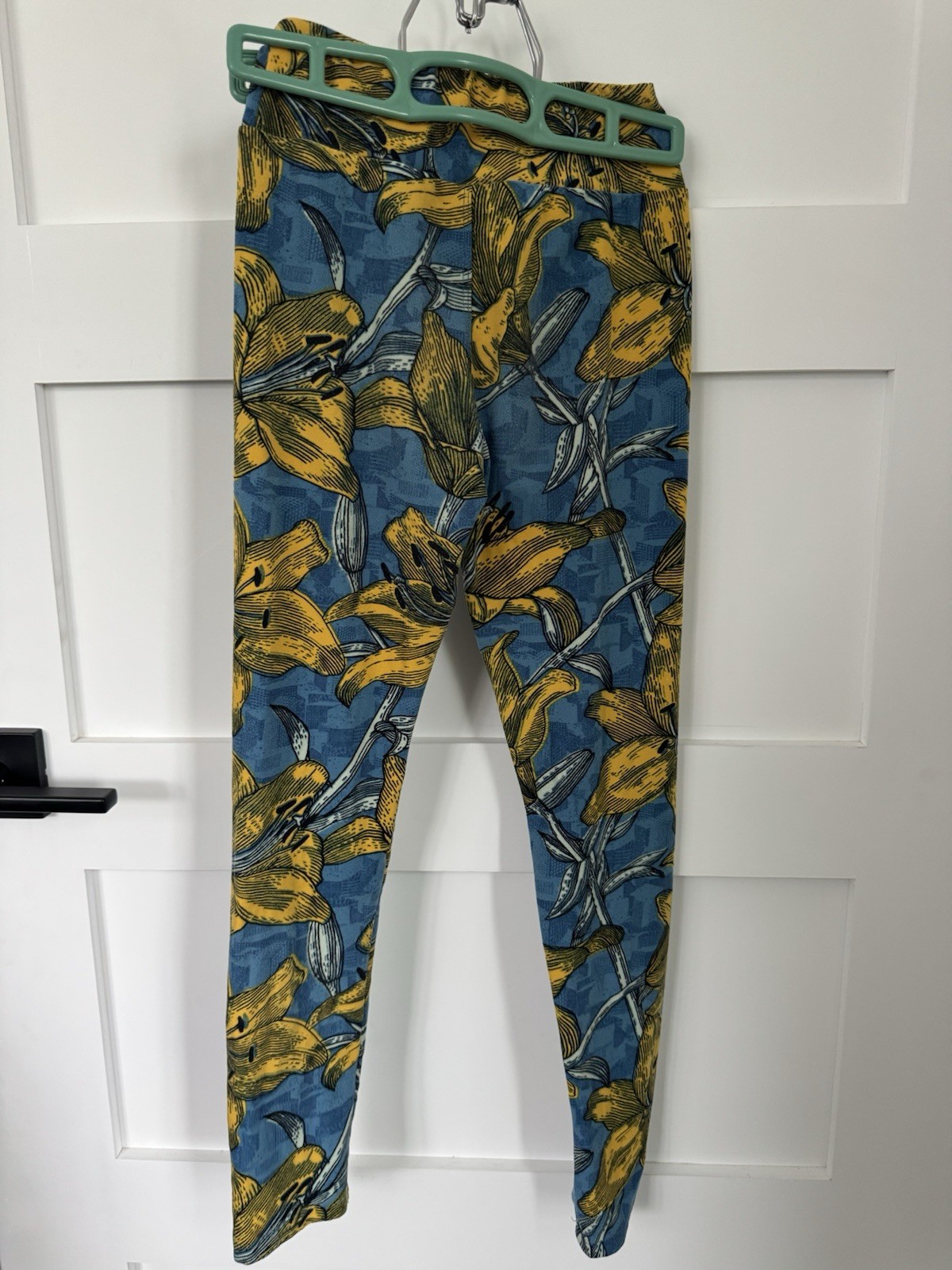 как выглядит LuLaRoe Tween Leggings Blue Yellow Floral Soft Stretch Kids Girls Pants фото