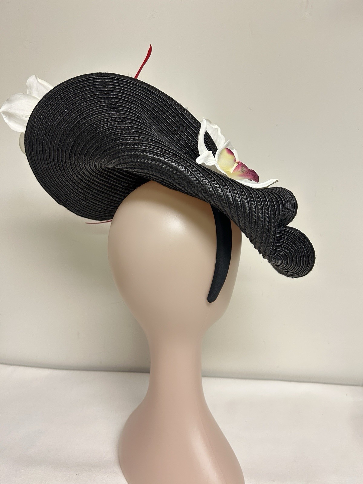 Kentucky Derby Black White Floral Ascot Fascinator, Large