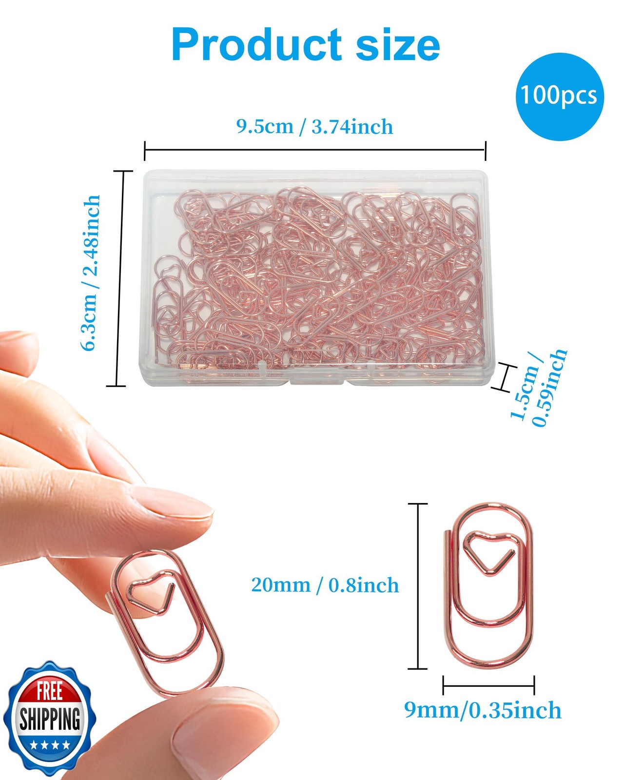 QUJUFIND 100 Pcs Love Heart Shaped Paper Clips, 0.8inch Cute Mini Paperclips
