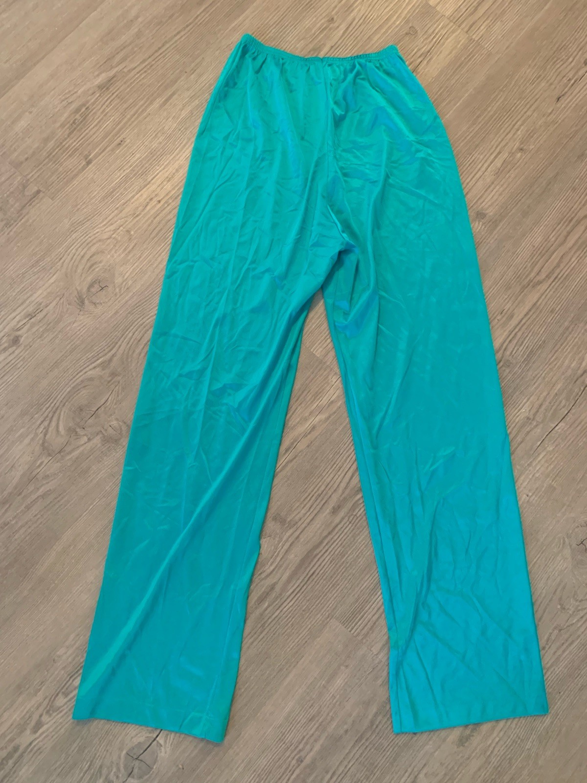 J. C. PENNEY Vintage Green Shiny Satin Slippery Sleepwear Pants Womens Petite