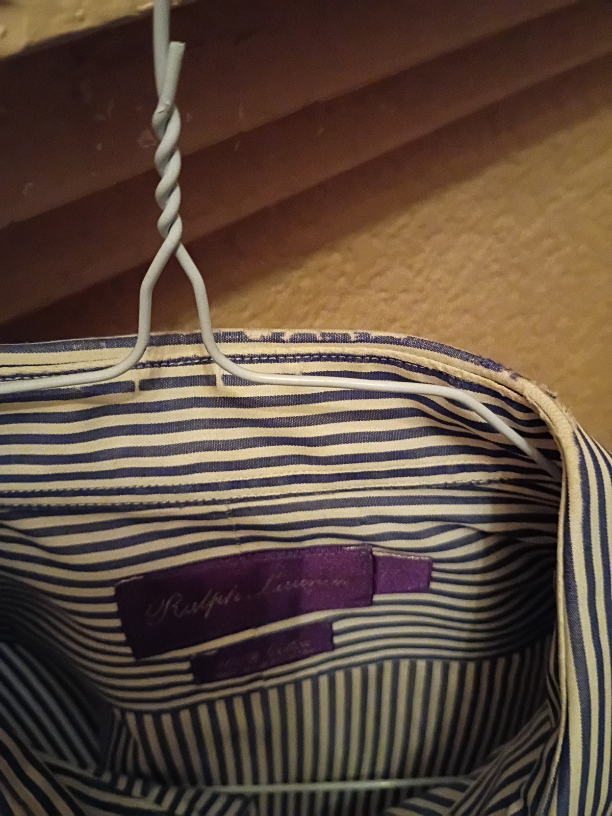 как выглядит Ralph Lauren Purple Label French Cuff 17 Blue/White Stripe Spread Collar фото