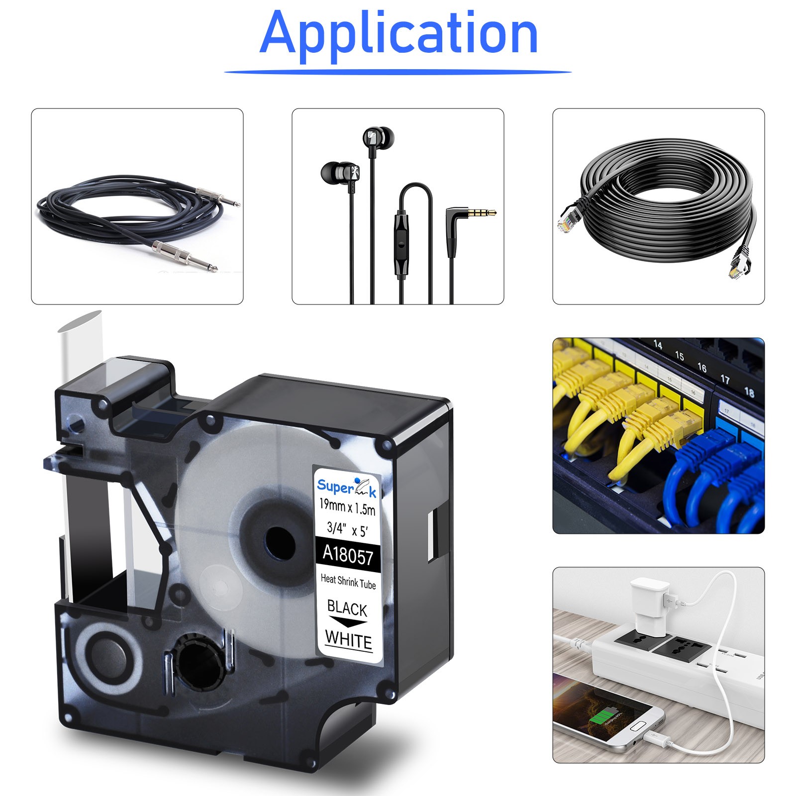 For DYMO Rhino 4200/5200 Heat-Shrink Tube 18057 Industry Label Tape 3/4 x 5'