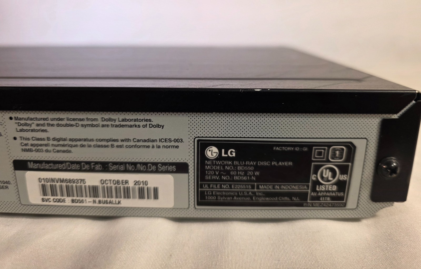 LG BD550 Blu-ray Disc DVD Player w/ HDMI Cord No Remote