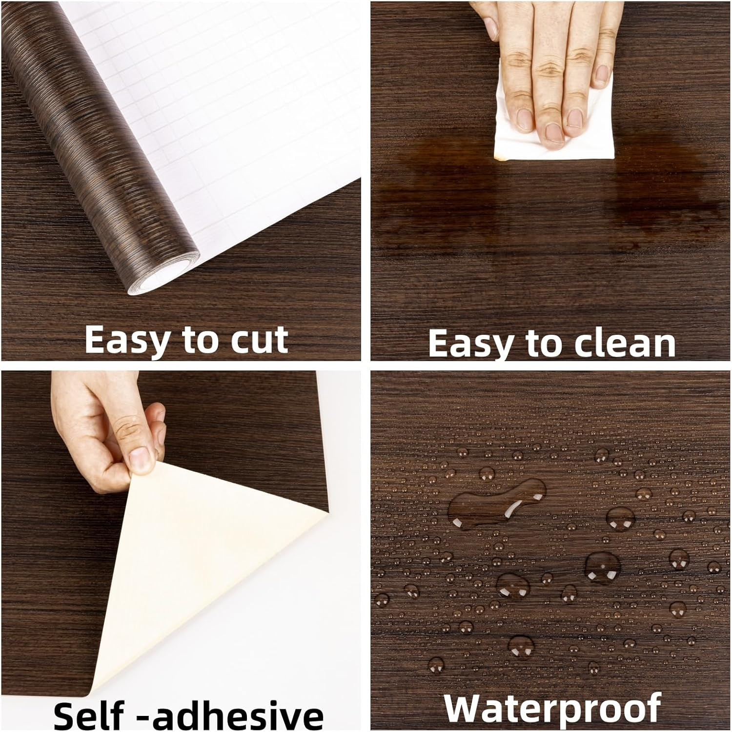Wood Contact Paper Dark Brown Peel and Stick Wallpaper 15.7''x118''