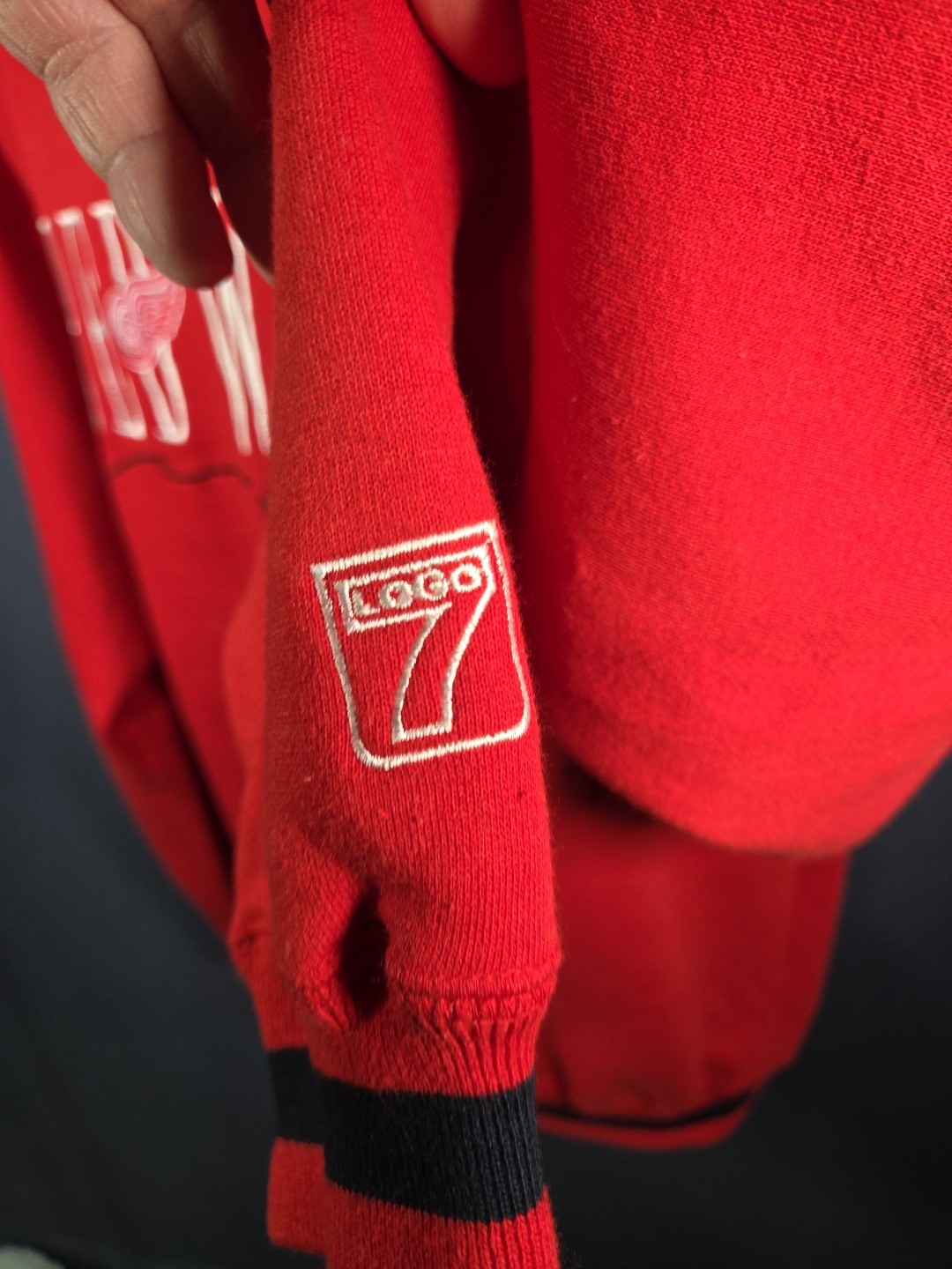 VTG Logo 7 Detroit Red Wings Embroidered Logo Crewneck Sweatshirt Size Large
