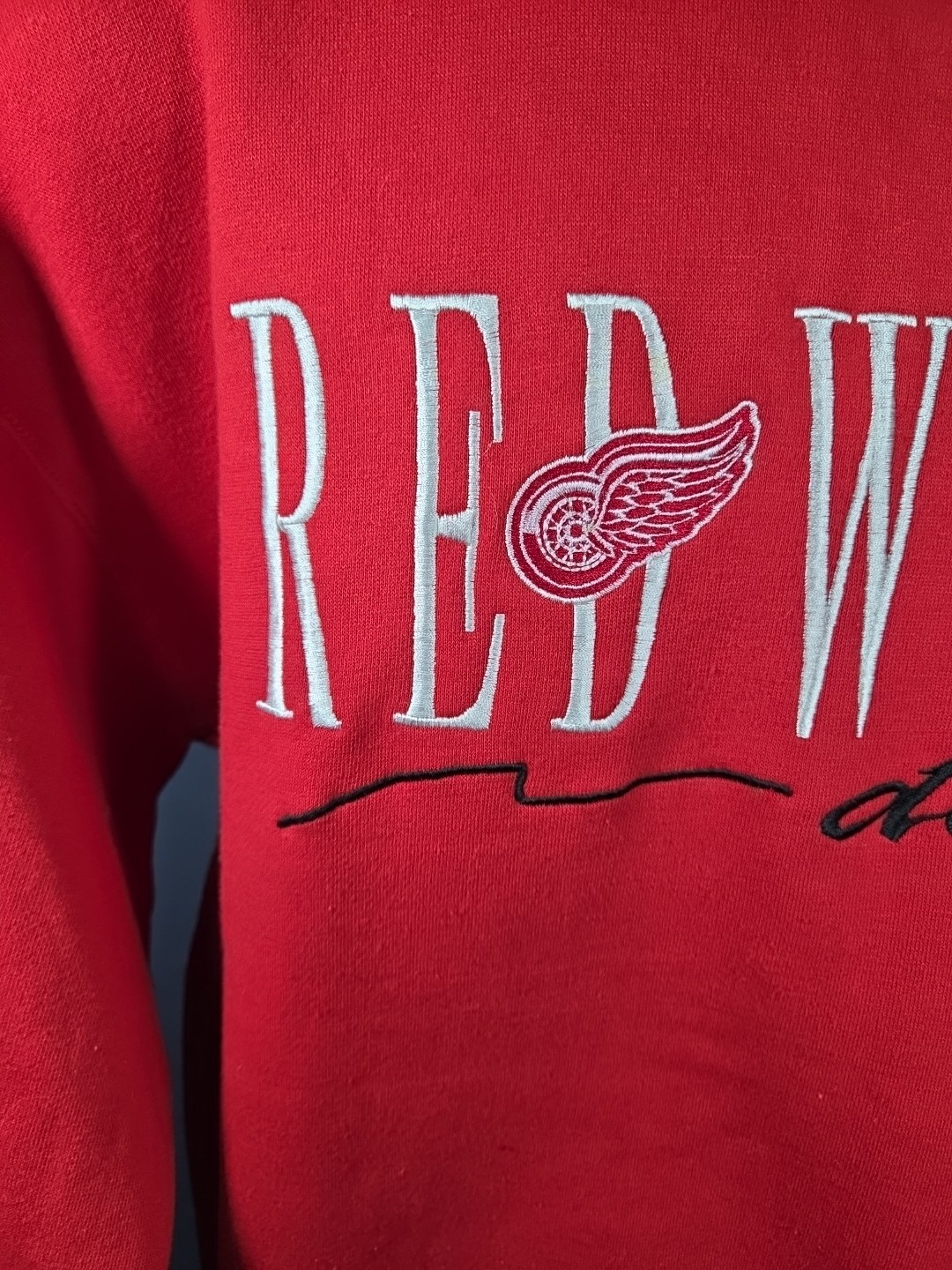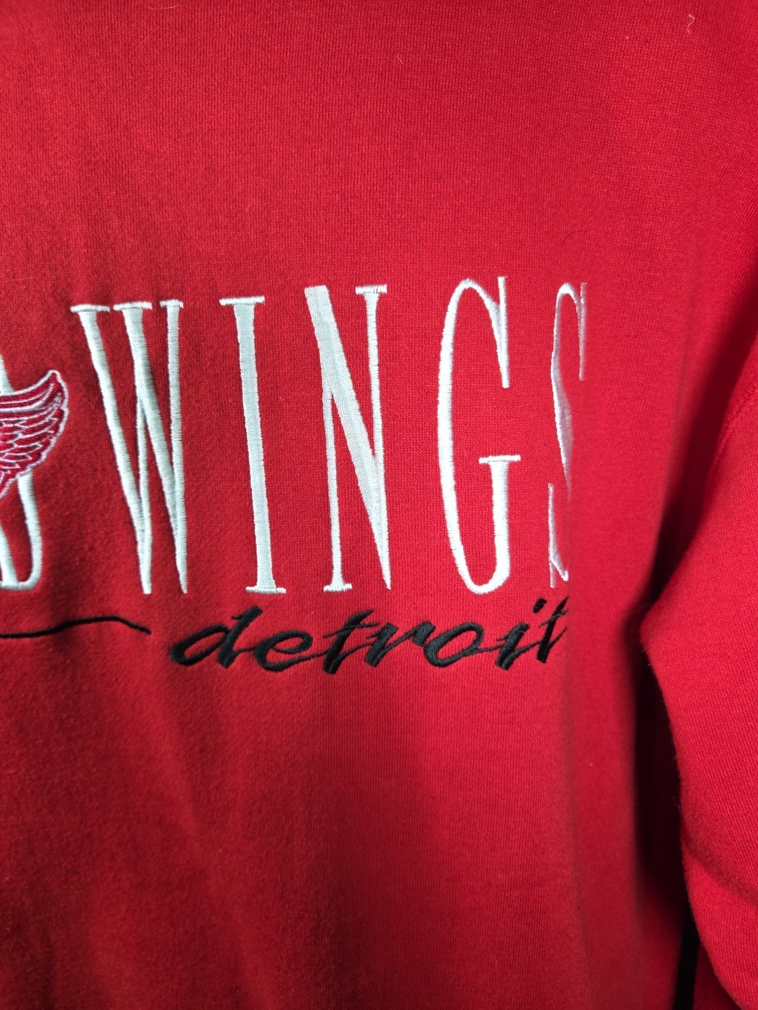 как выглядит VTG Logo 7 Detroit Red Wings Embroidered Logo Crewneck Sweatshirt Size Large фото