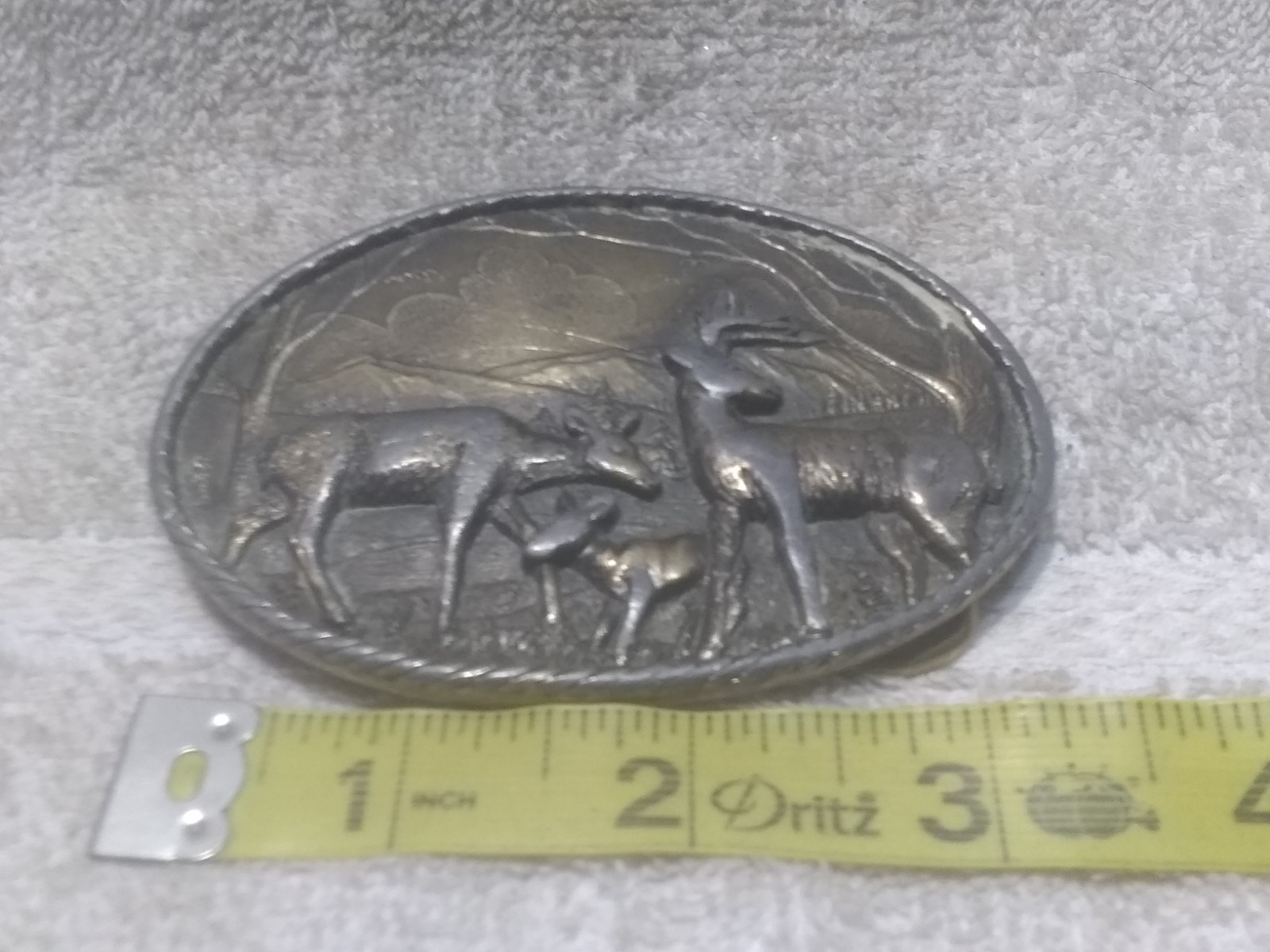 как выглядит Deer Buck Fawn Grazing In Outdoor Scene Silver Belt Buckle Solid Heavy Great фото