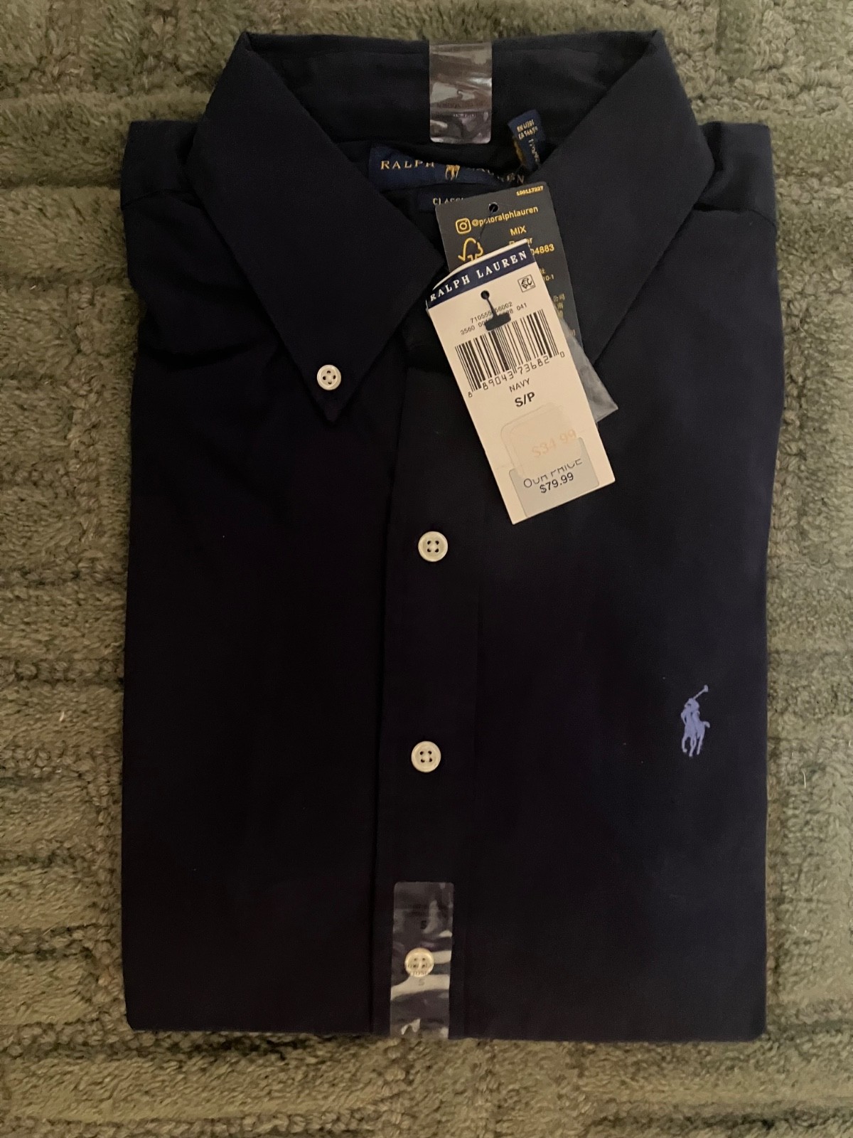 как выглядит NWT Ralph Lauren Polo Button-Up Short Sleeve Classic Fit Shirt, Blue, Small фото