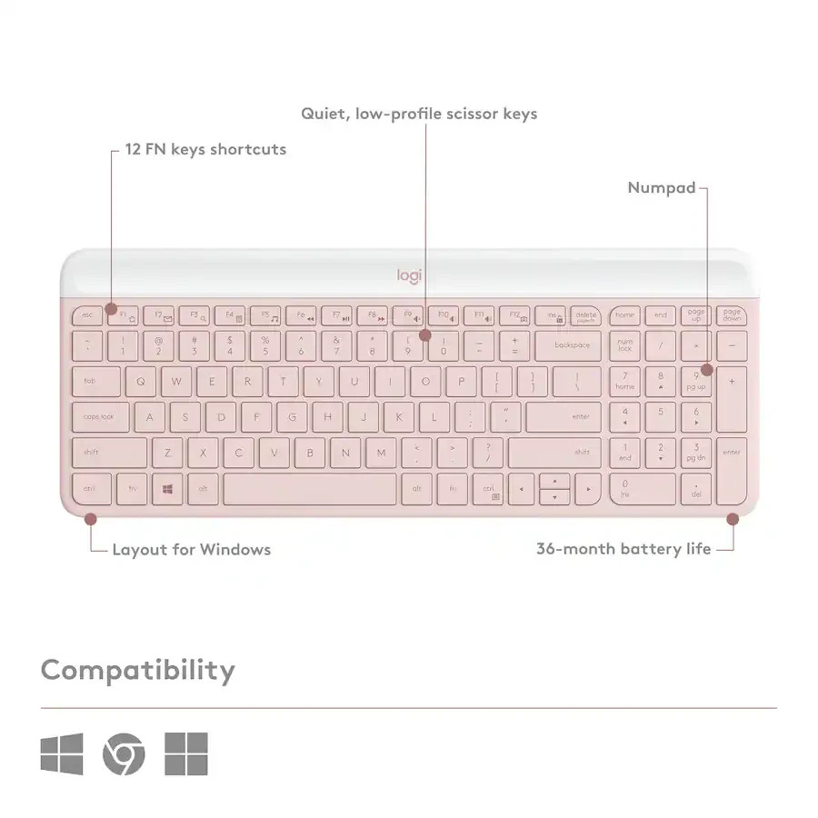 Logitech MK470 Slim Wireless Keyboard and Mouse Combo - Pink - RETAIL