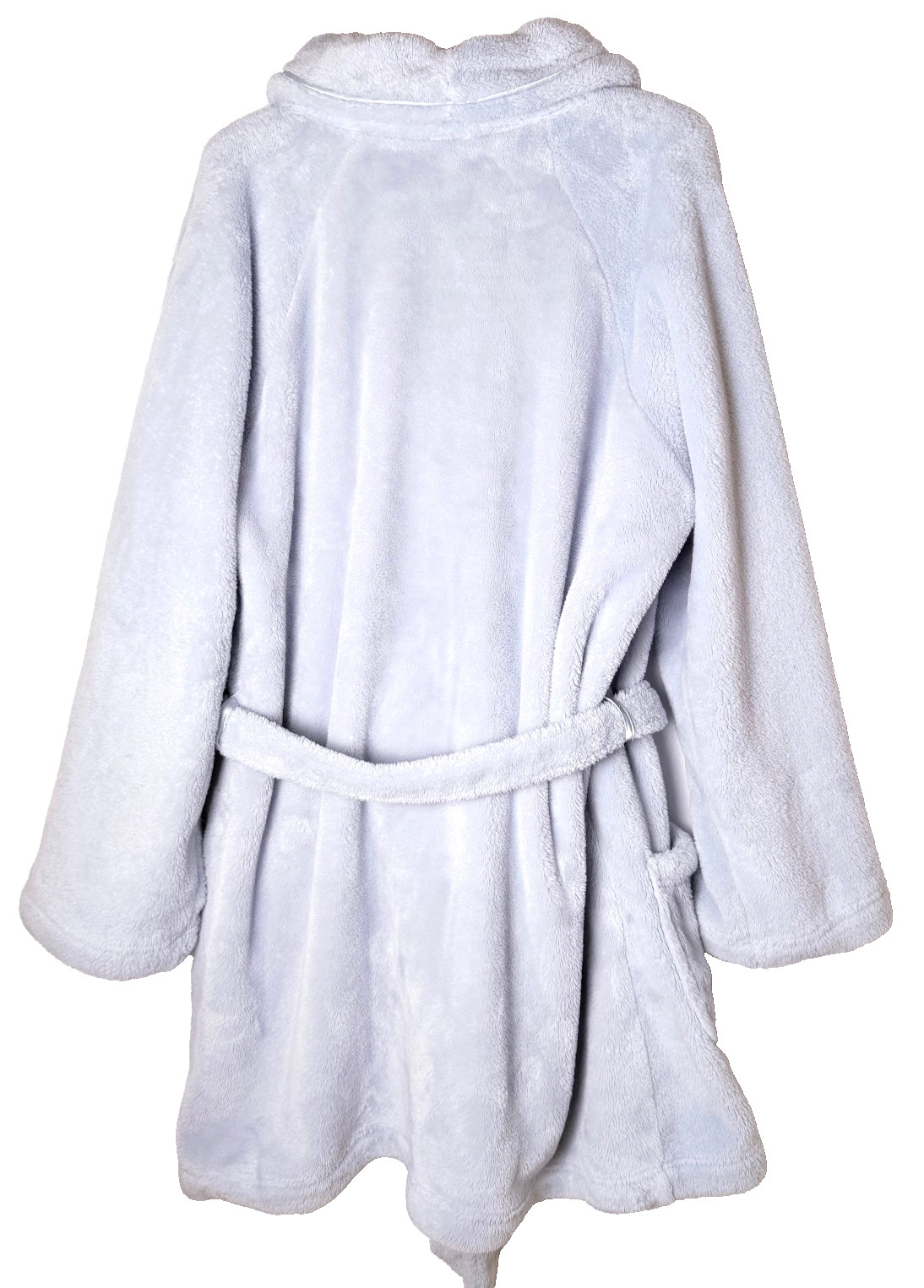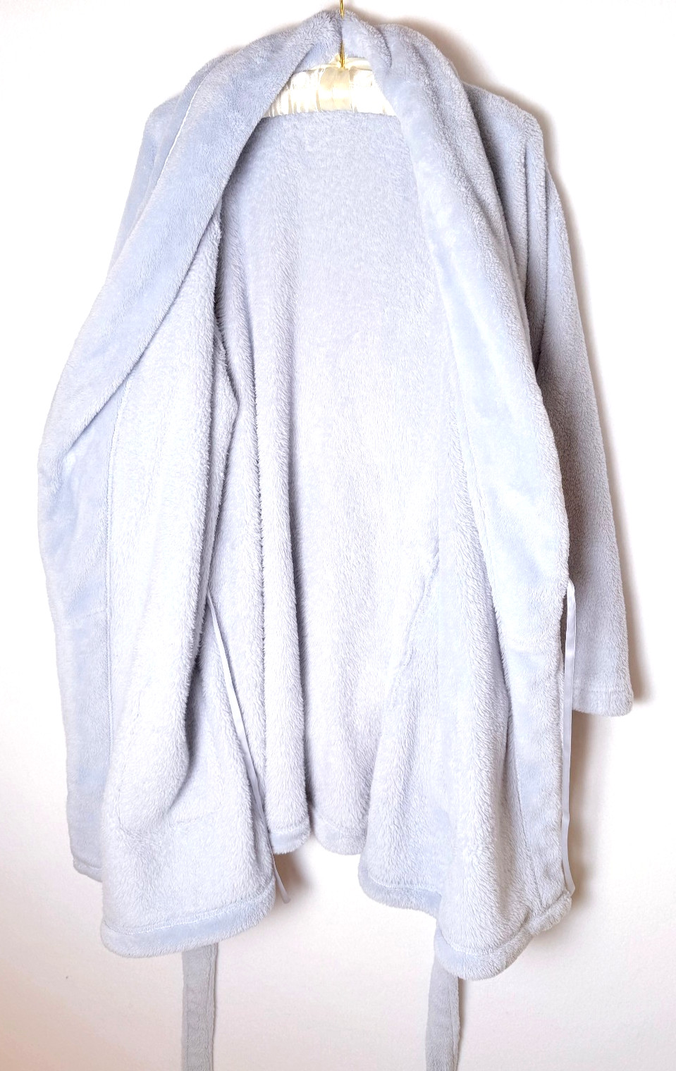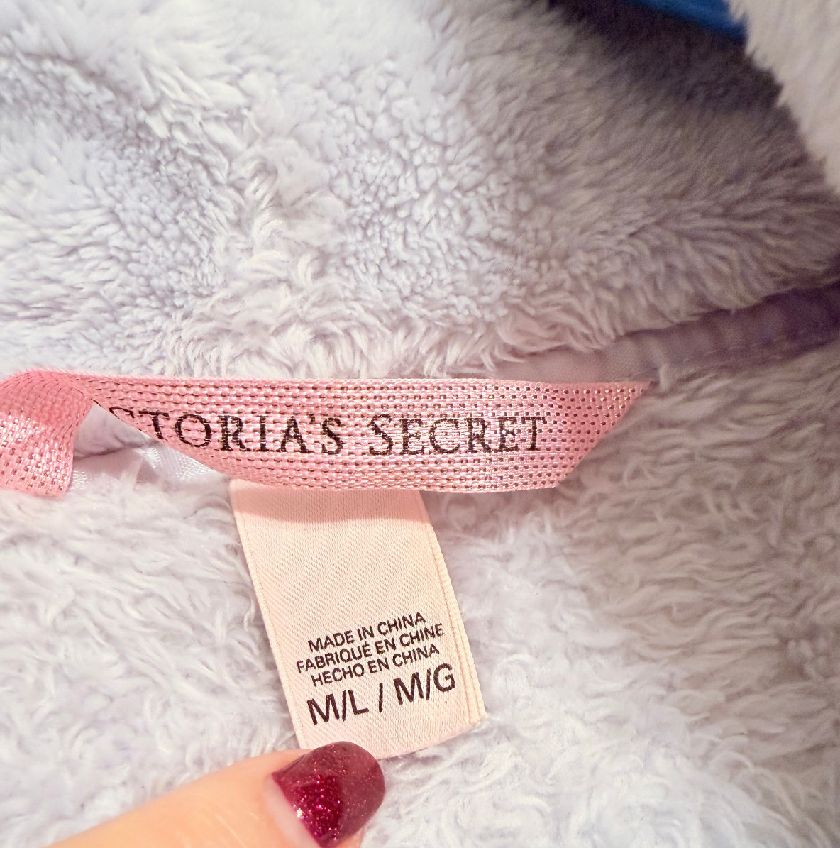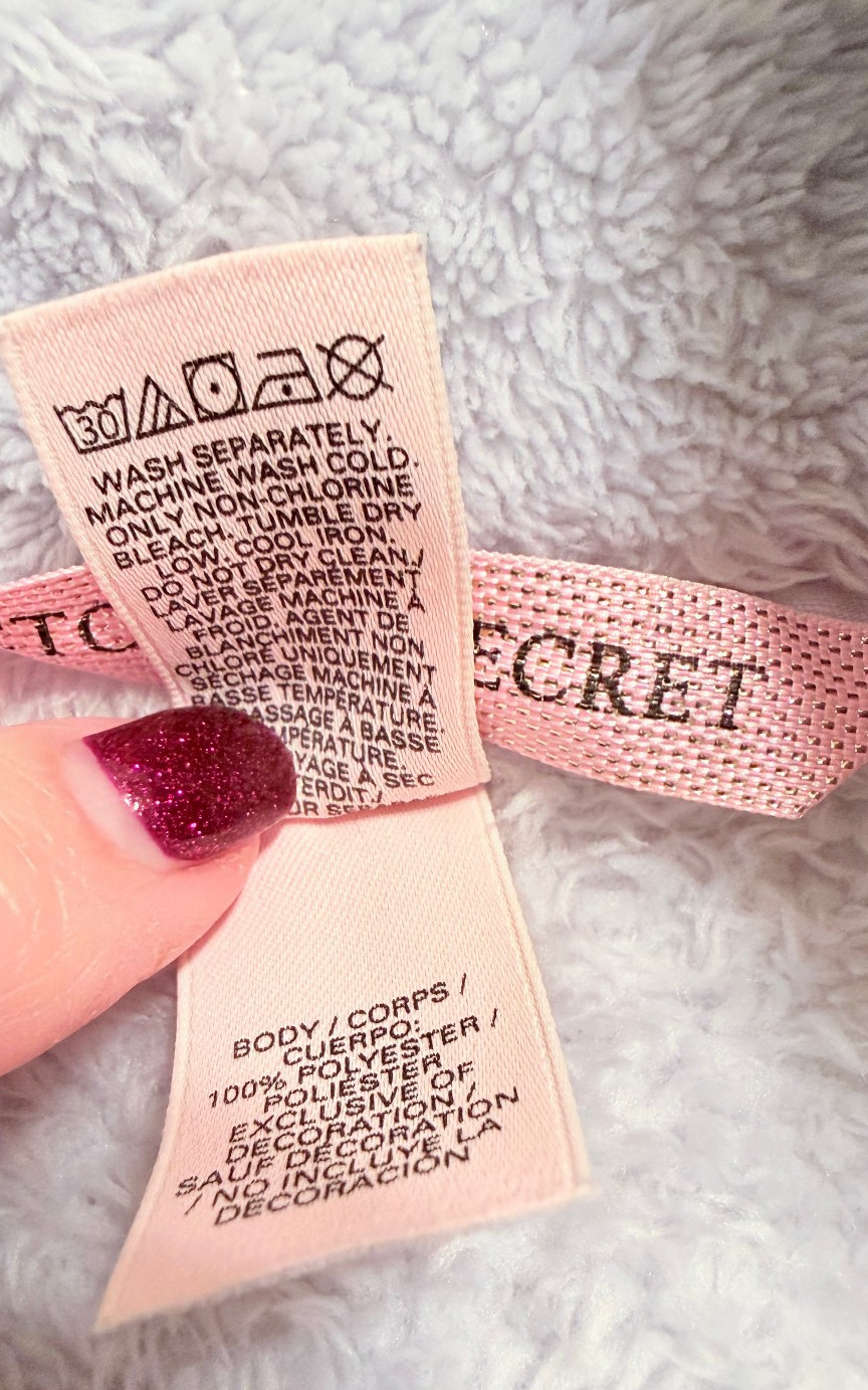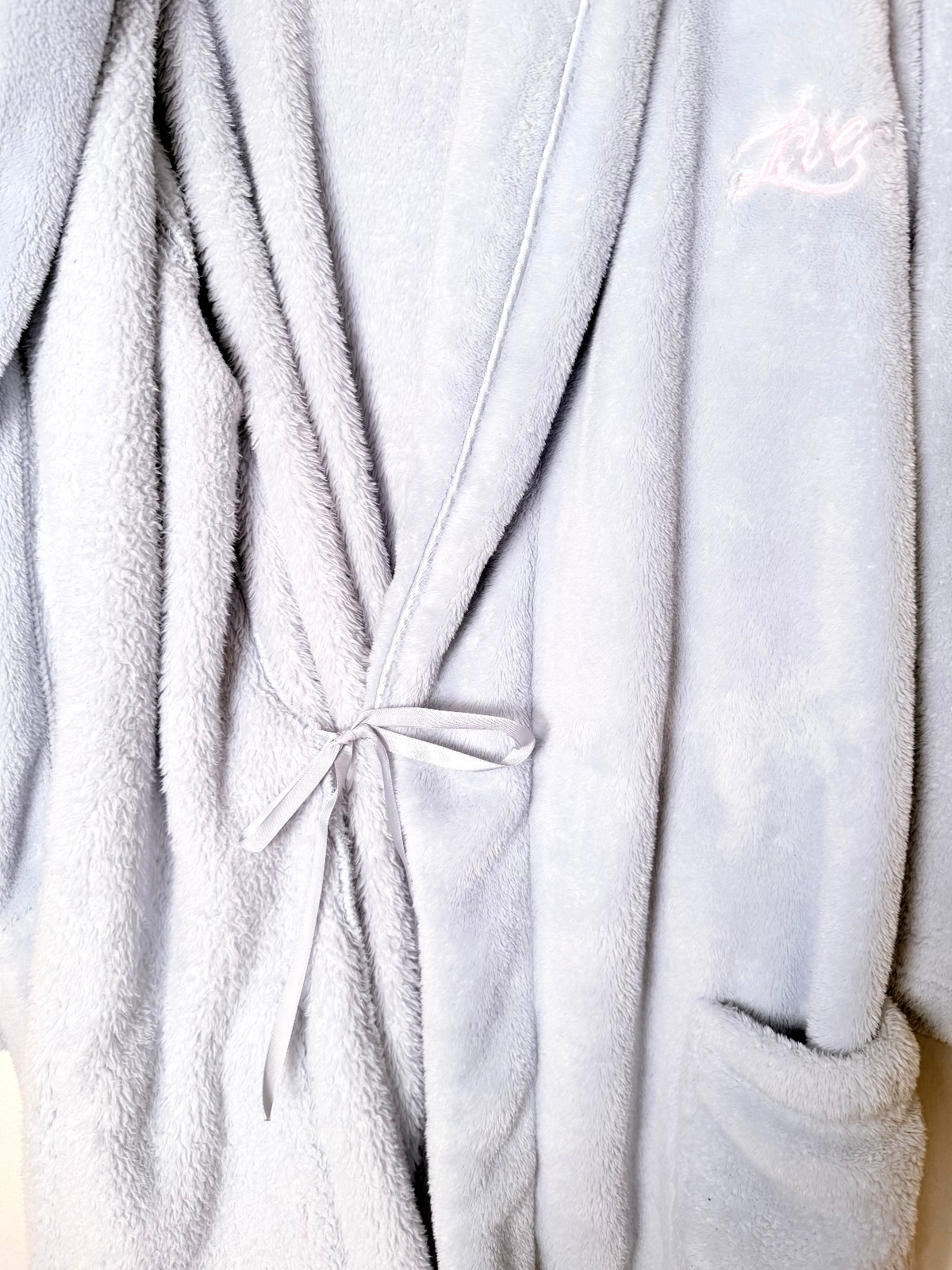 как выглядит Victorias Secret M/L Cozy Plush Robe Blue Tie Pockets Pink Embroidered "Love" фото