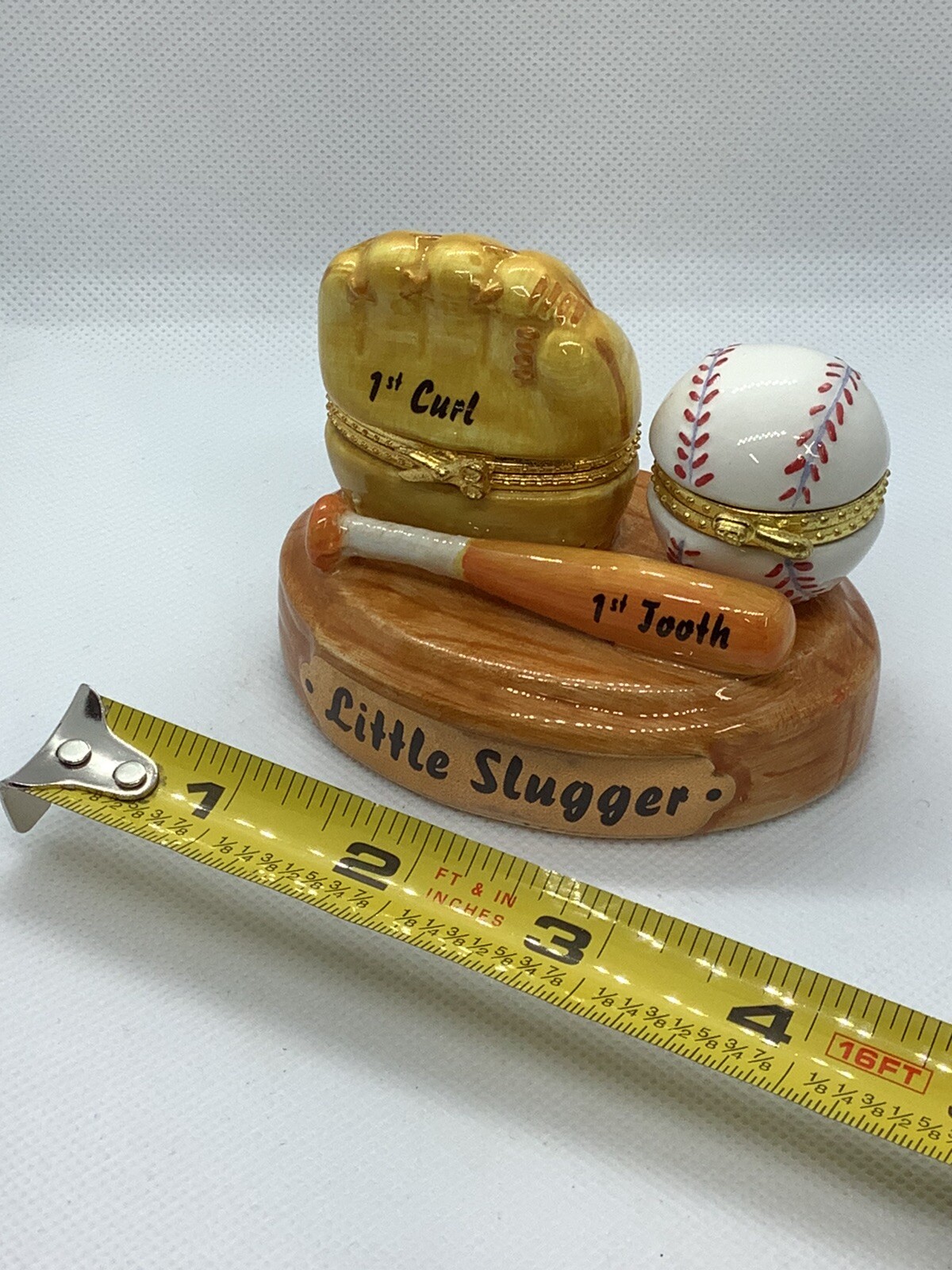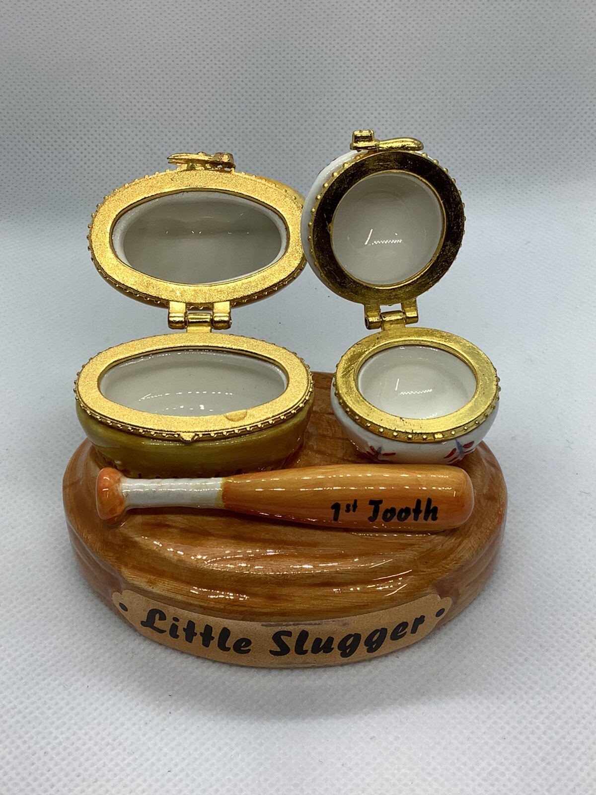 Baby Mudd Pie Trinket Box Ceramic First Tooth Curl Little Slugger Baseball