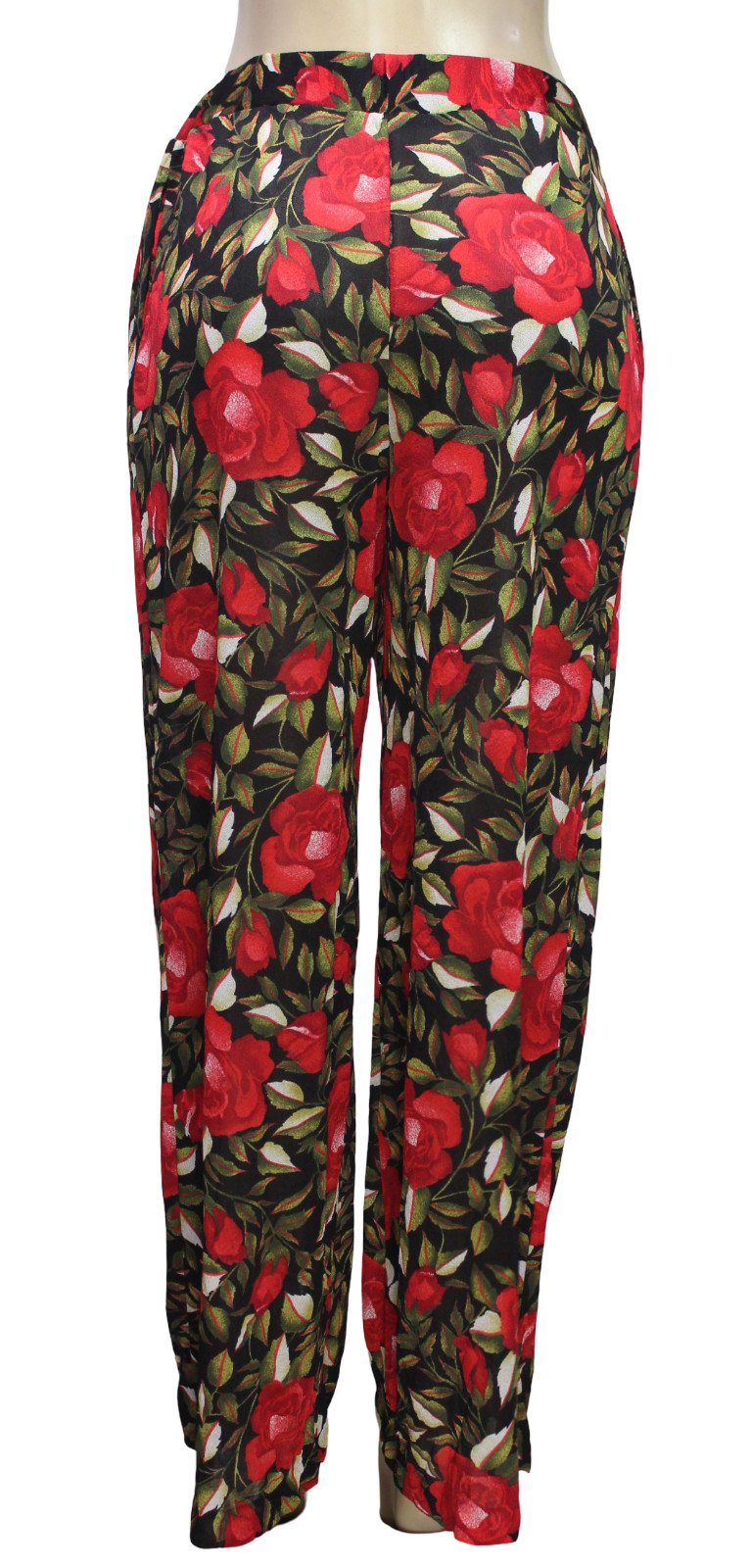 Vintage Women's Pull On Pants Floral Multicolor Sheer Wide Leg Size M