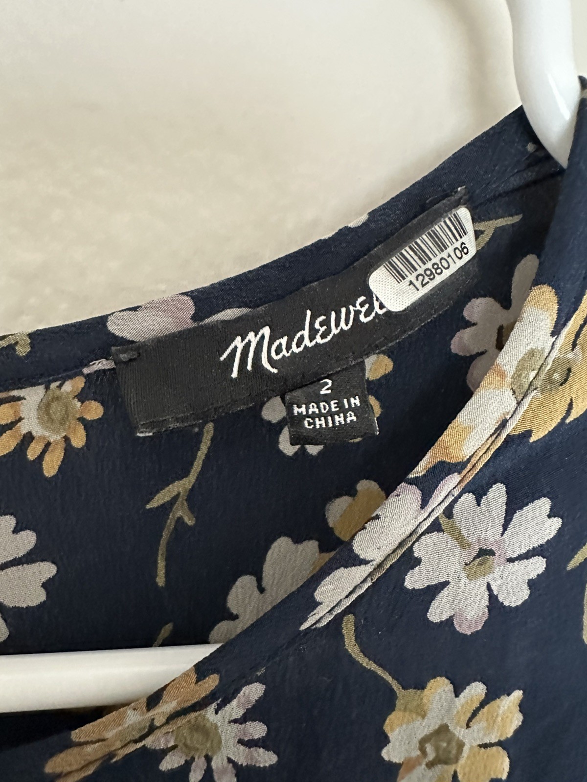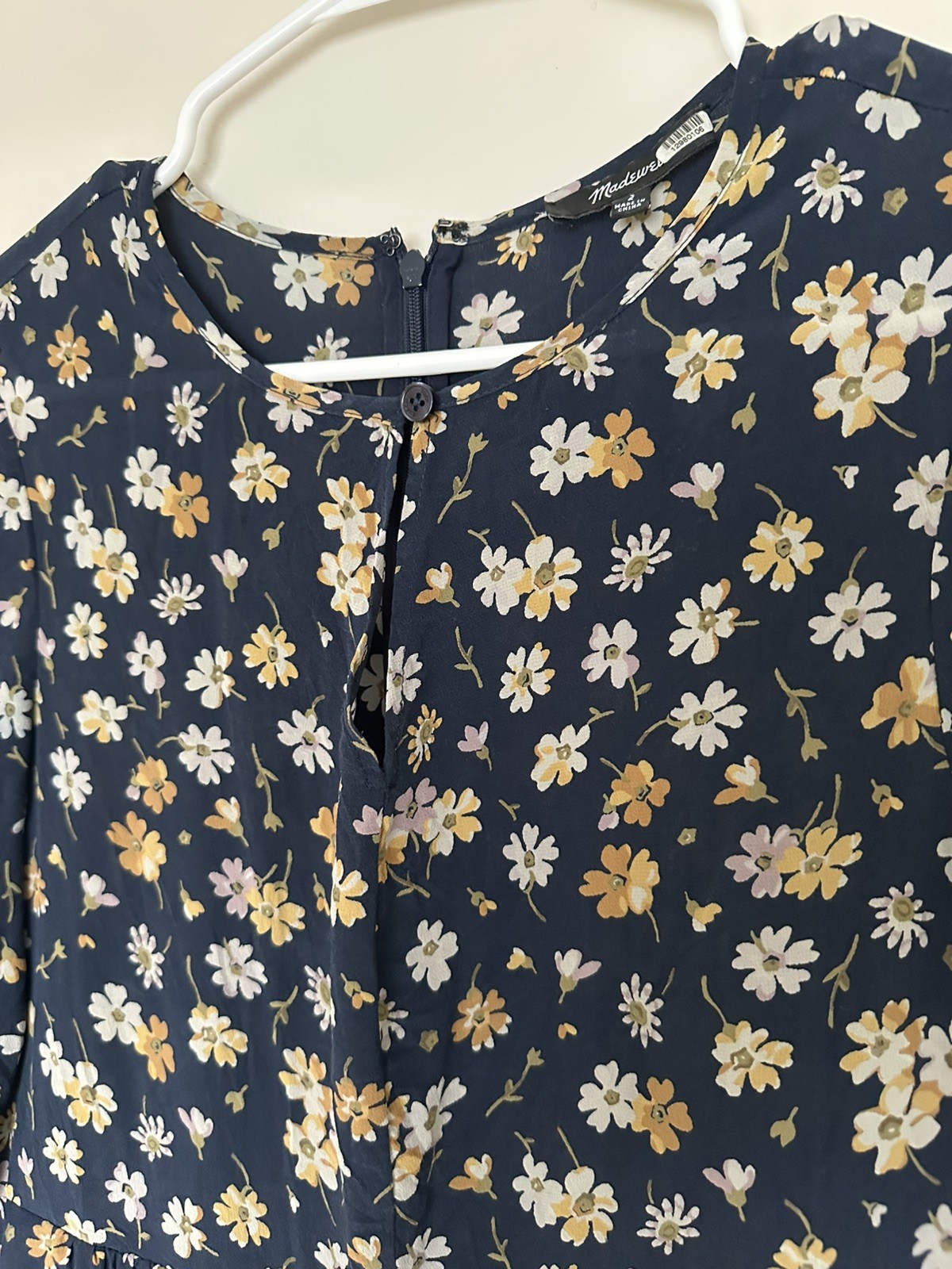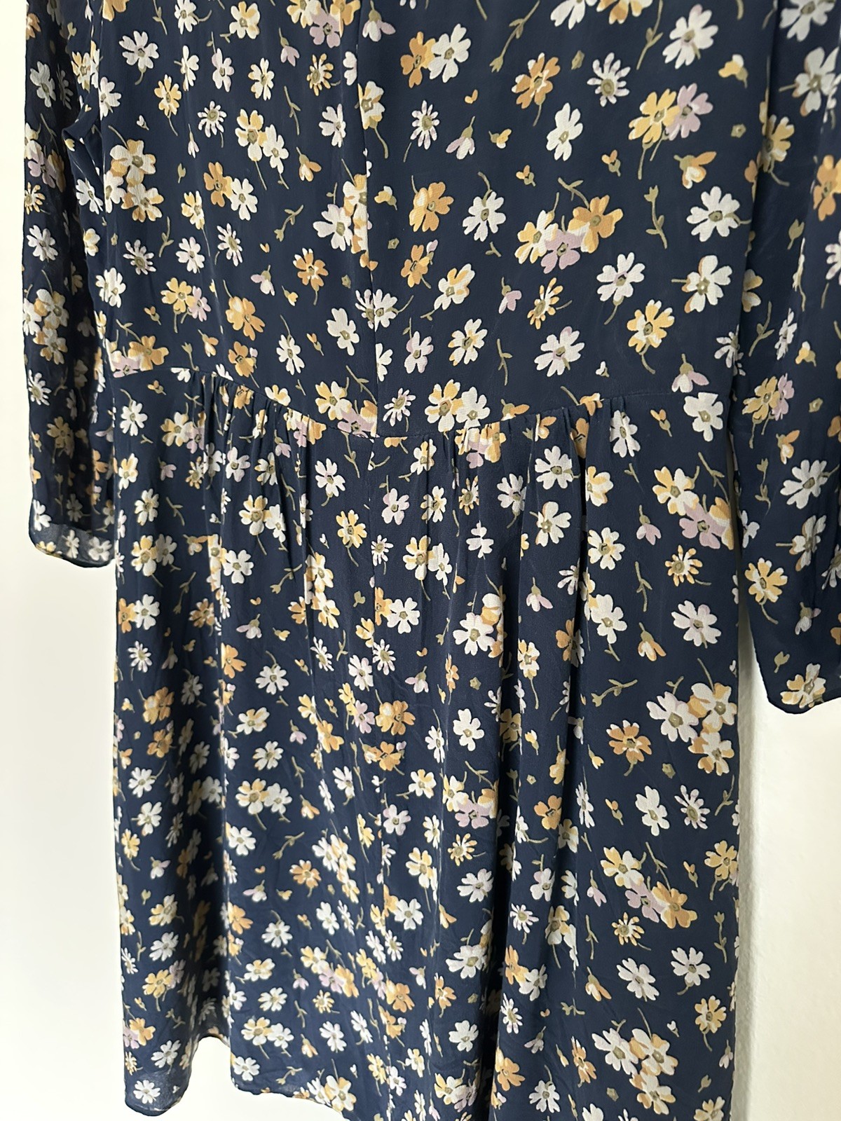 как выглядит EUC Madewell Silk Floral Dress 2 XS Navy Blue 3/4 Sleeves Day Party фото