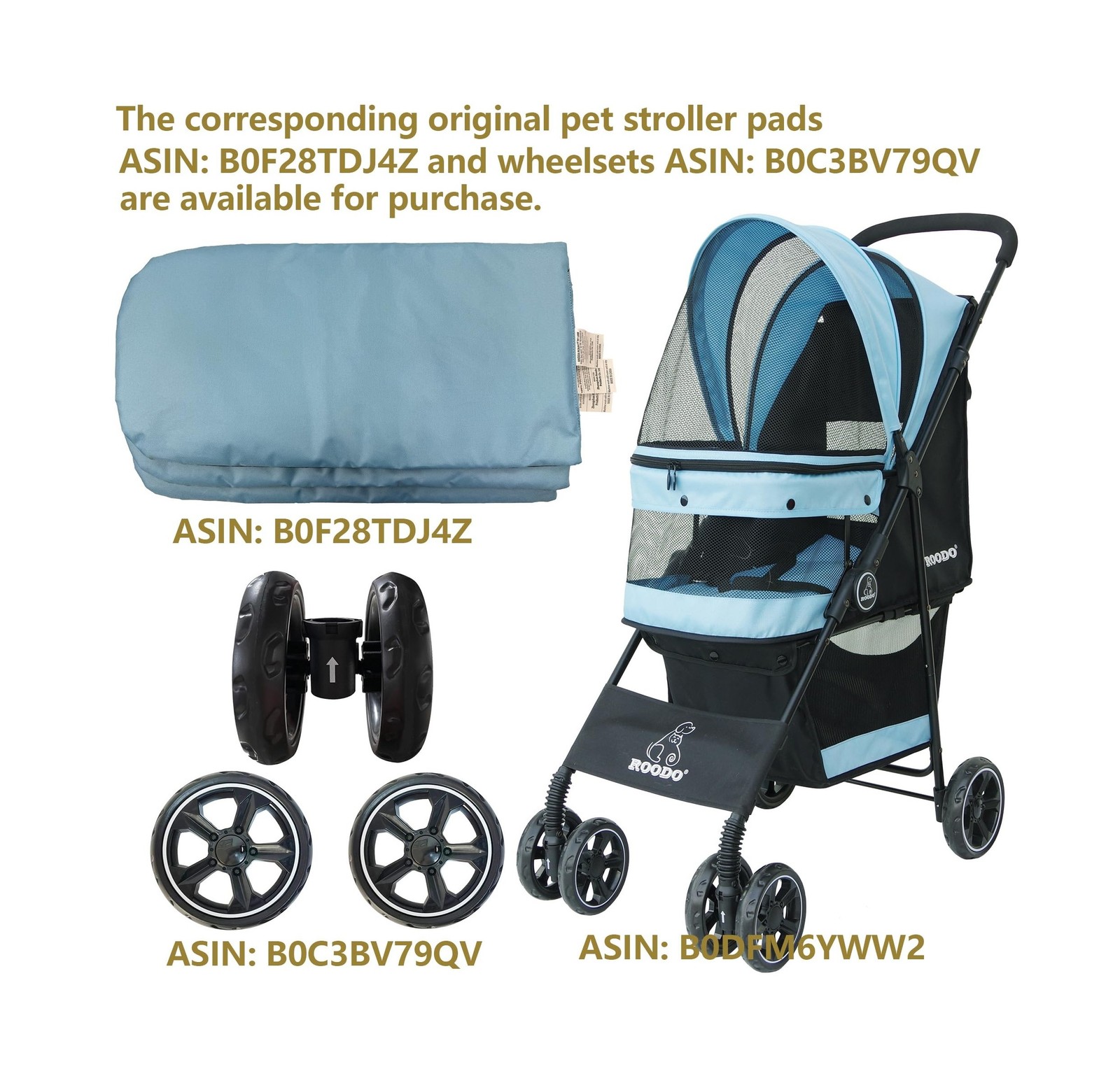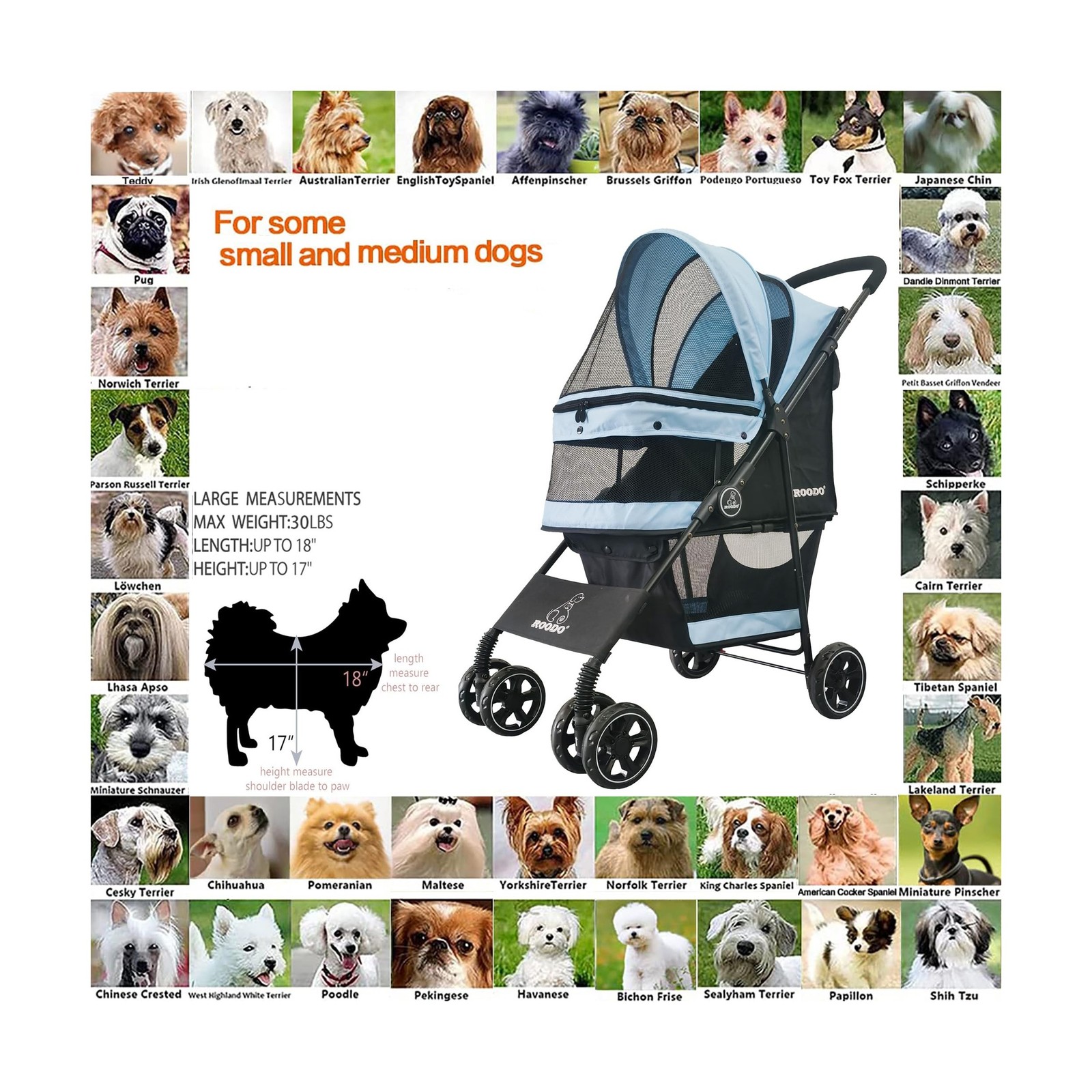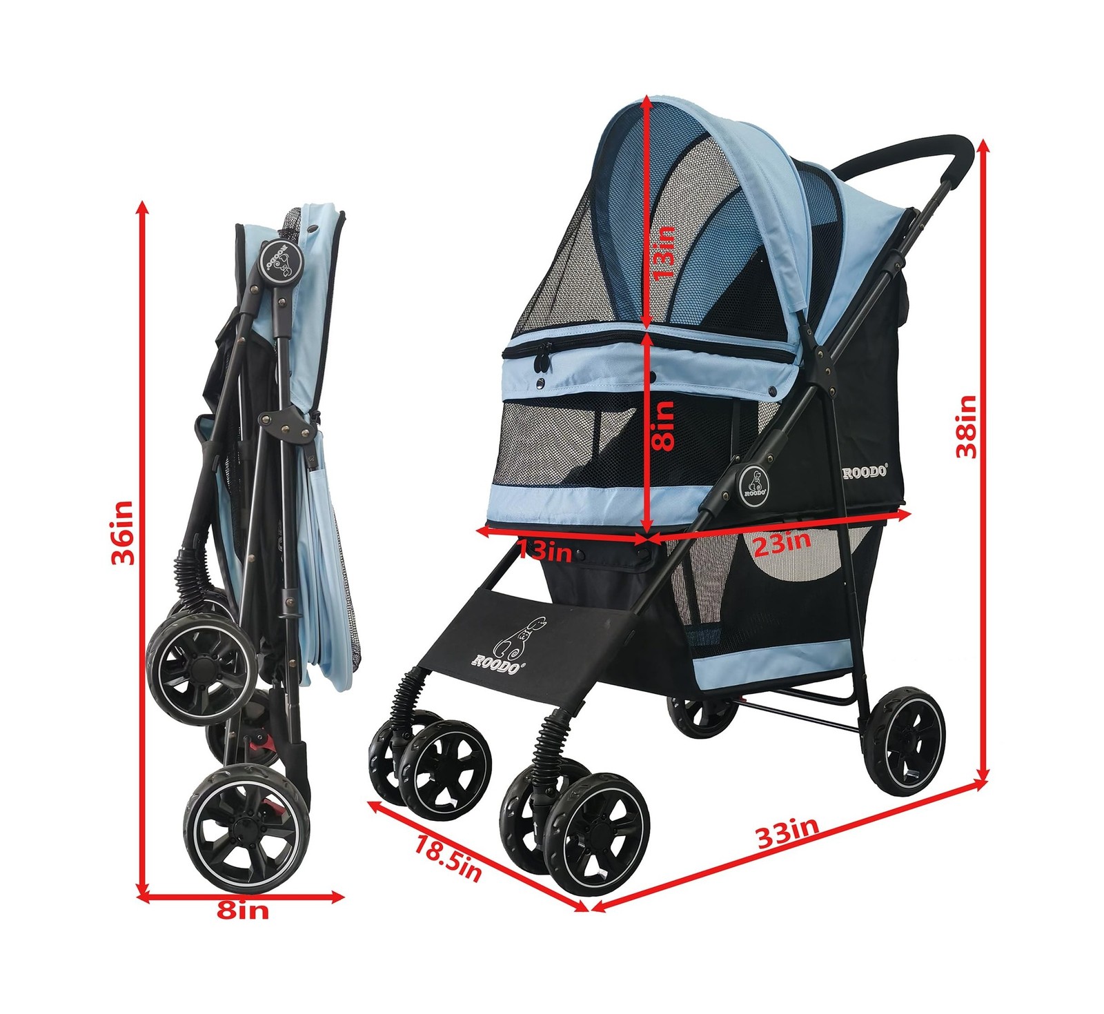 ROODO 4 Wheel Dog Cat Pet Stroller Best Lightweight Foldable Compac... Fast Ship