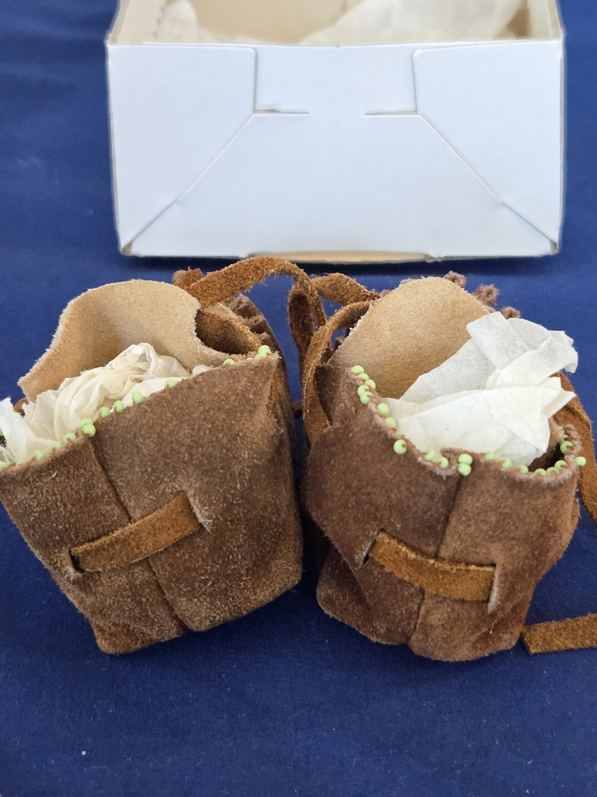 как выглядит Vintage Handmade Suede Baby Moccasins w/ Beads Box  The Moccasin Shop Old... фото