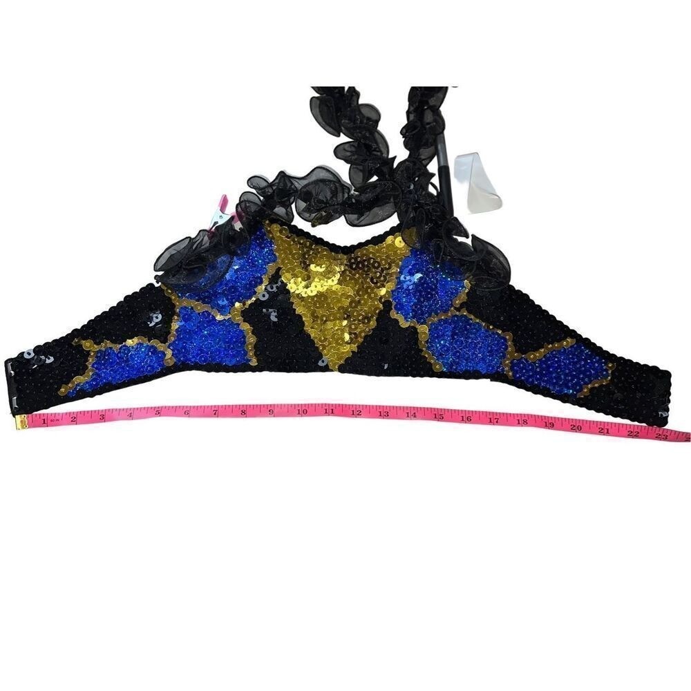 как выглядит Black Gold Dance Cheer Pageant Costume Sequins Girls Medium CM 6pc Halter Tutu фото