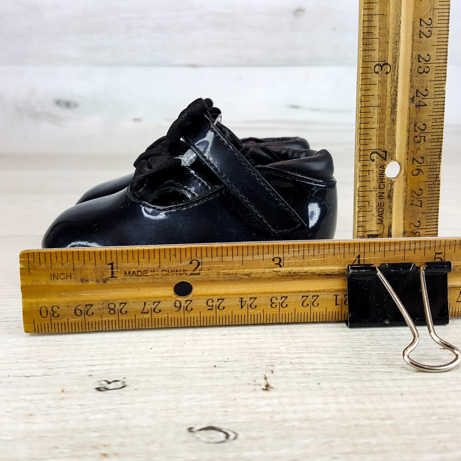 Vintage Black Patent Leather Shoes Mary Janes w Bows Toddler Size 1 or Baby Doll