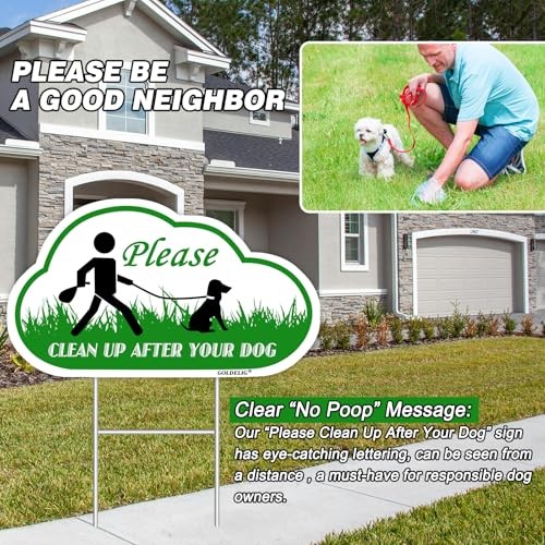 Clean Up After Your Dog Signs -2PCS, 13.8 x 8.3 with Metal Stake, Double
